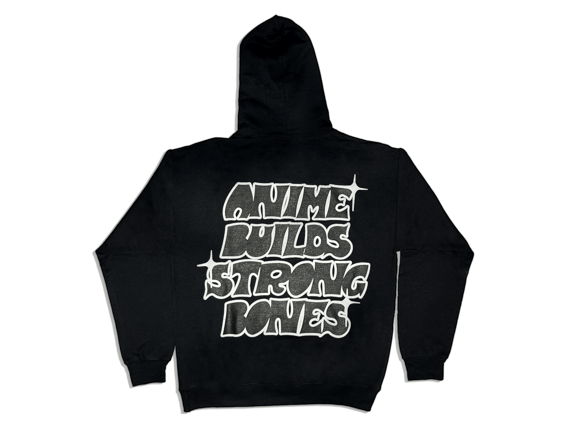 Anime Strong Bones Puff Print Hoodie - Black