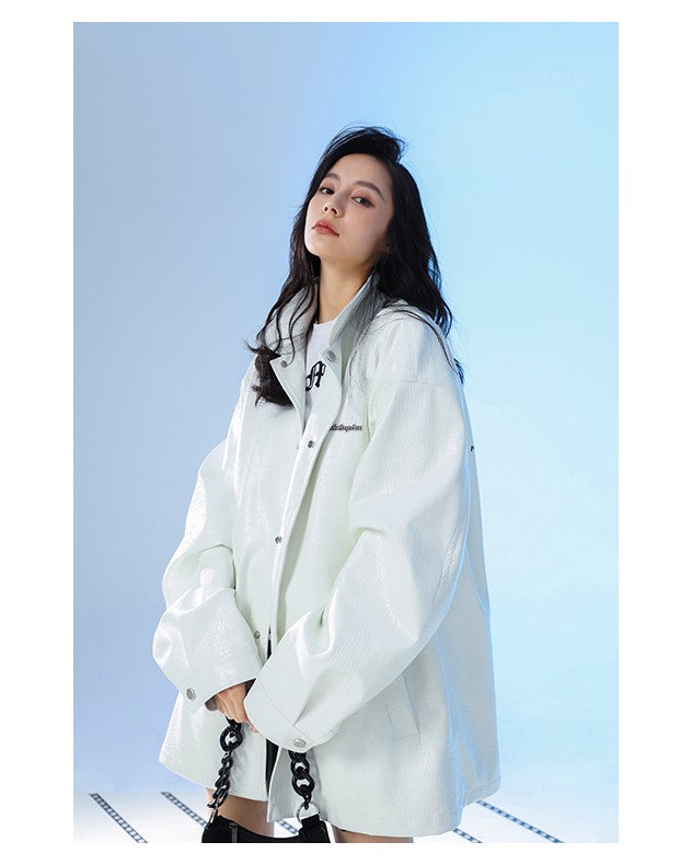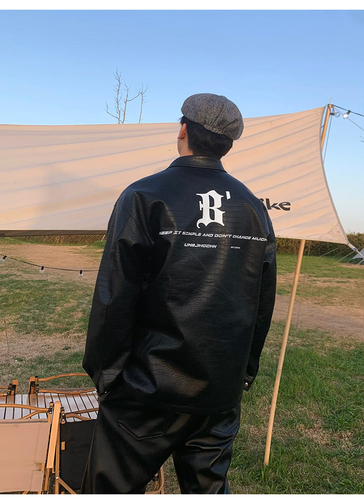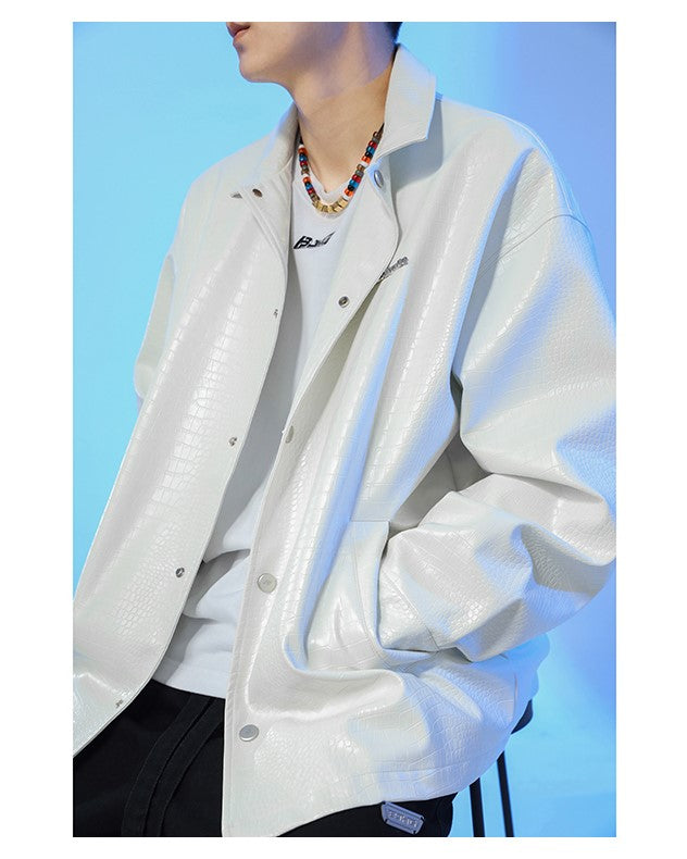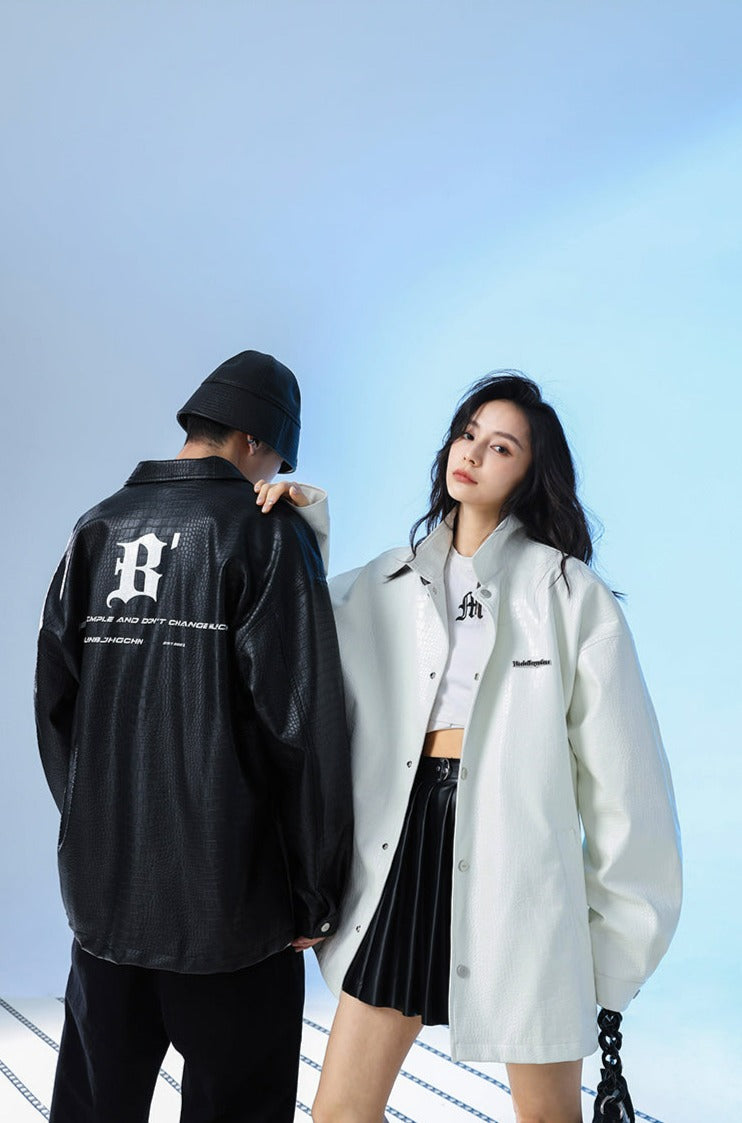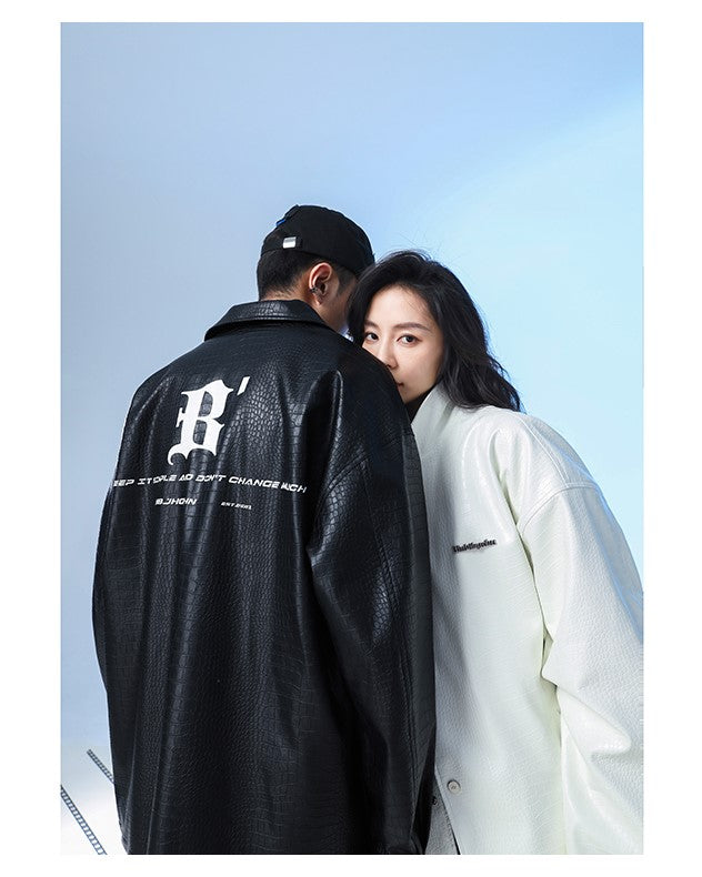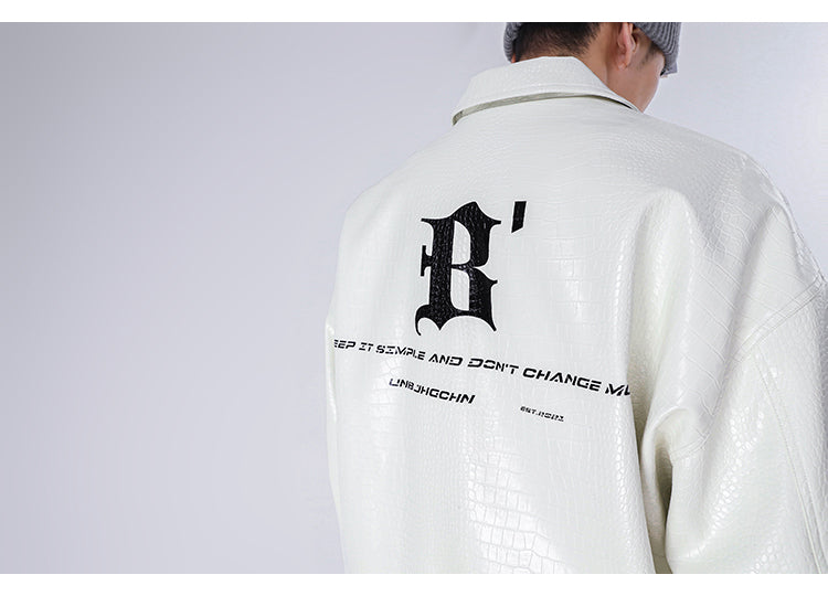 BJHG Faux-Leather Biker Jacket with Croc Texture