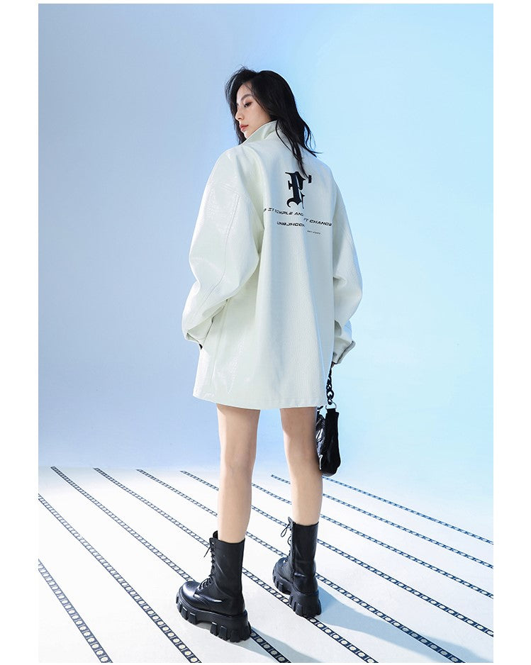 Elevate your style with the BJHG Croc-Embossed Stretch Faux-Leather Biker Jacket. This stunning jacket features a sleek spread collar and a secure press-stud closure for a modern look. Enjoy the practicality of welt pockets and a distinctive logo printed at the back. The single-button barrel cuffs and silver-tone hardware add a touch of sophistication.