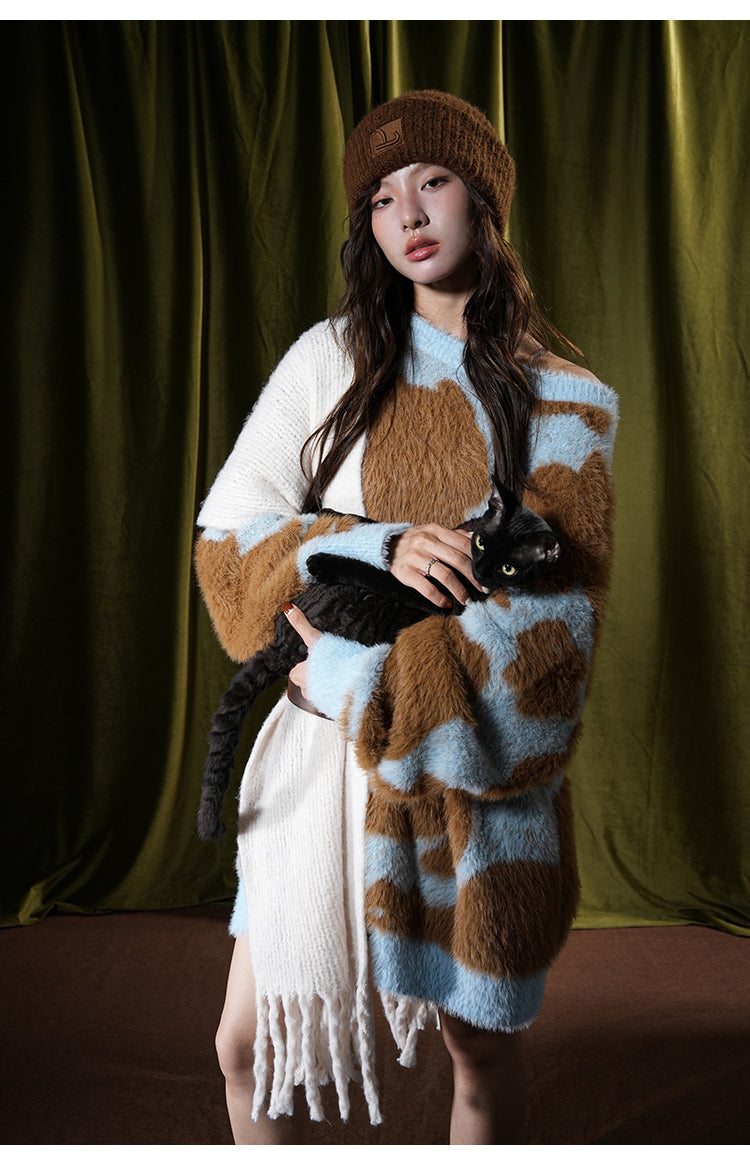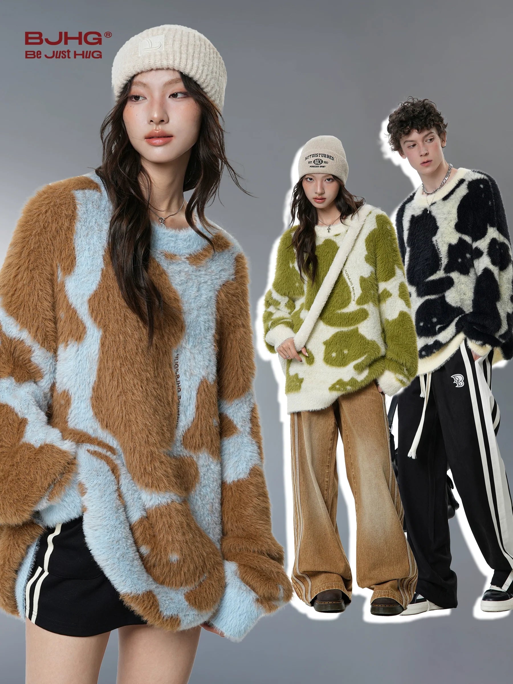 Elevate your wardrobe with the BJHG Nylon Sweater, featuring a stylish rib knit crewneck, hem, and cuffs. Adorned with a playful cat pattern throughout, this sweater is perfect for animal lovers.