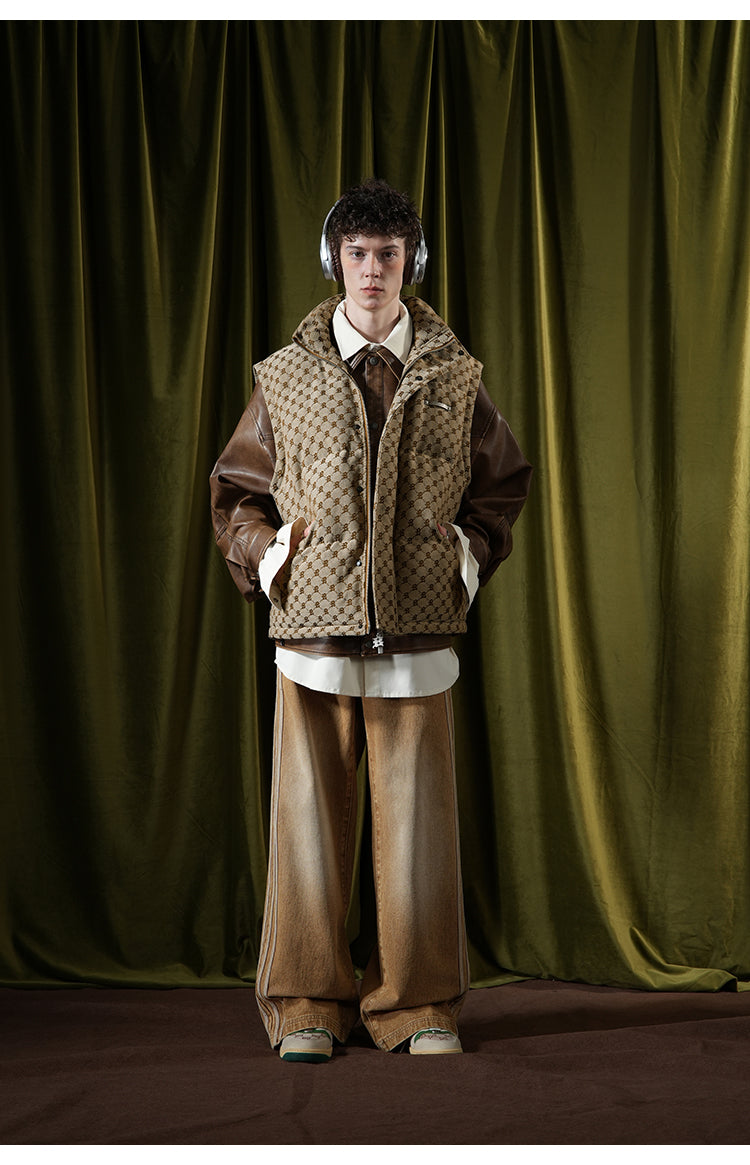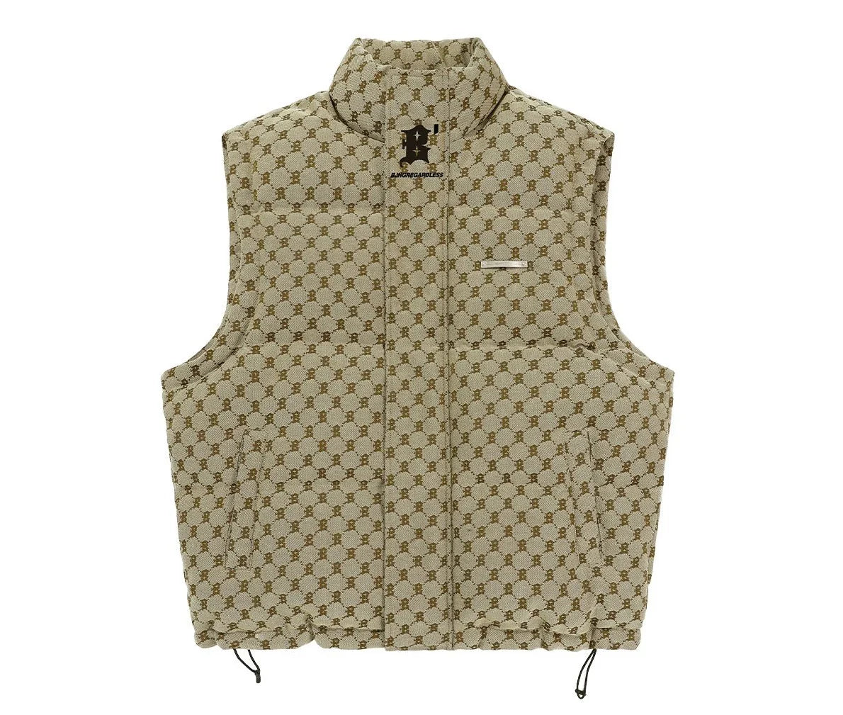 Stay warm and stylish with the BJHG Polyester Puffer Vest. Featuring a unique logo pattern, this vest is designed with a stand collar and a secure zip and button closure for added comfort.