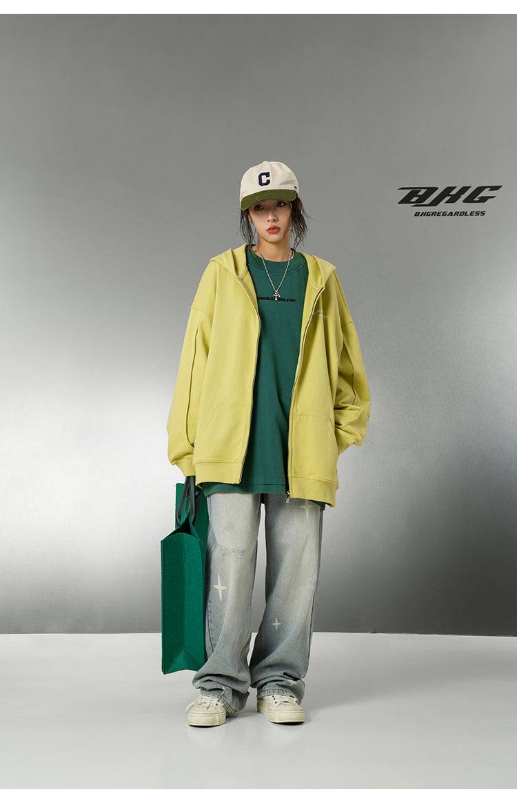Elevate Your Style with BJHG 12.8oz Heavy Denim Jeans! These jeans feature a trendy fading and distressing design, complemented by stylish star prints throughout.
