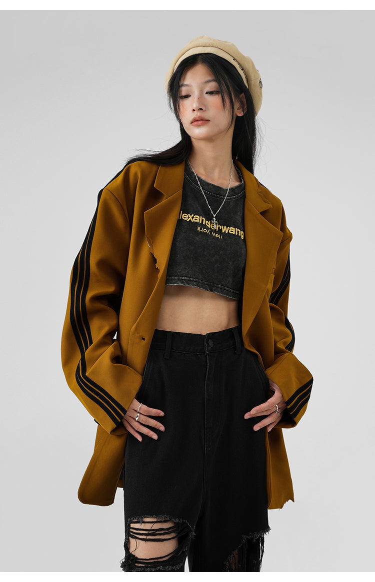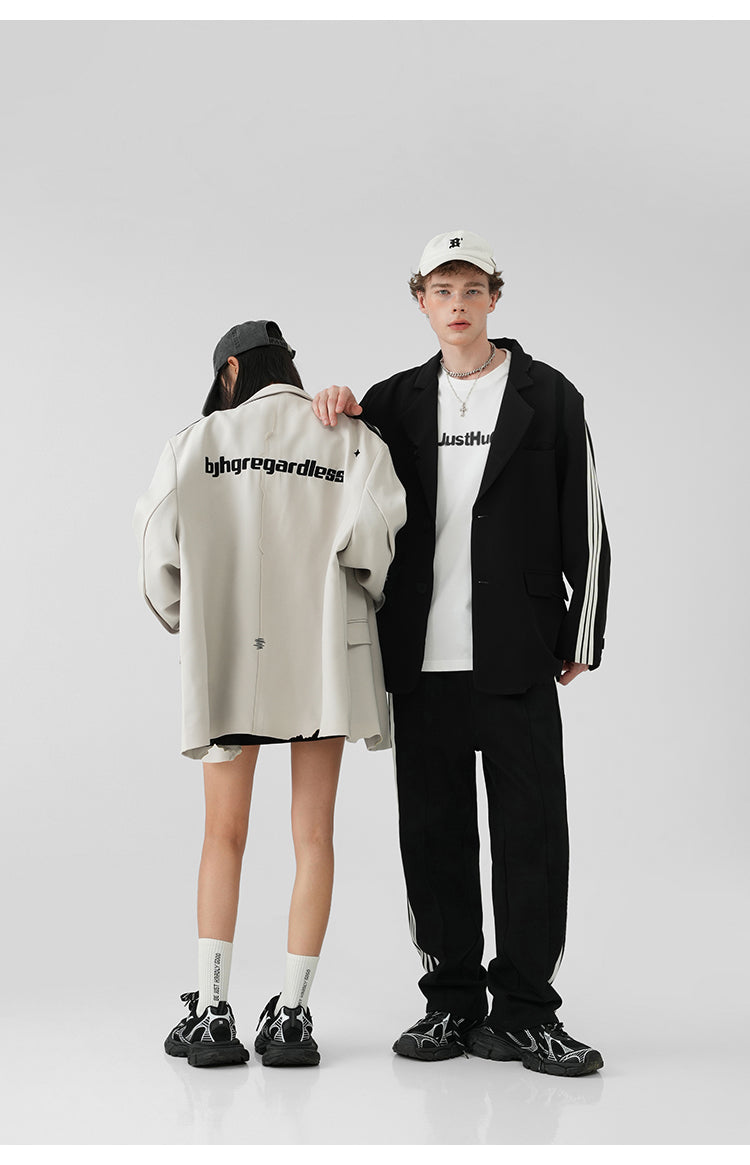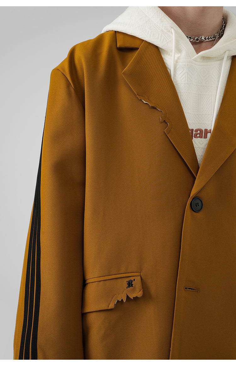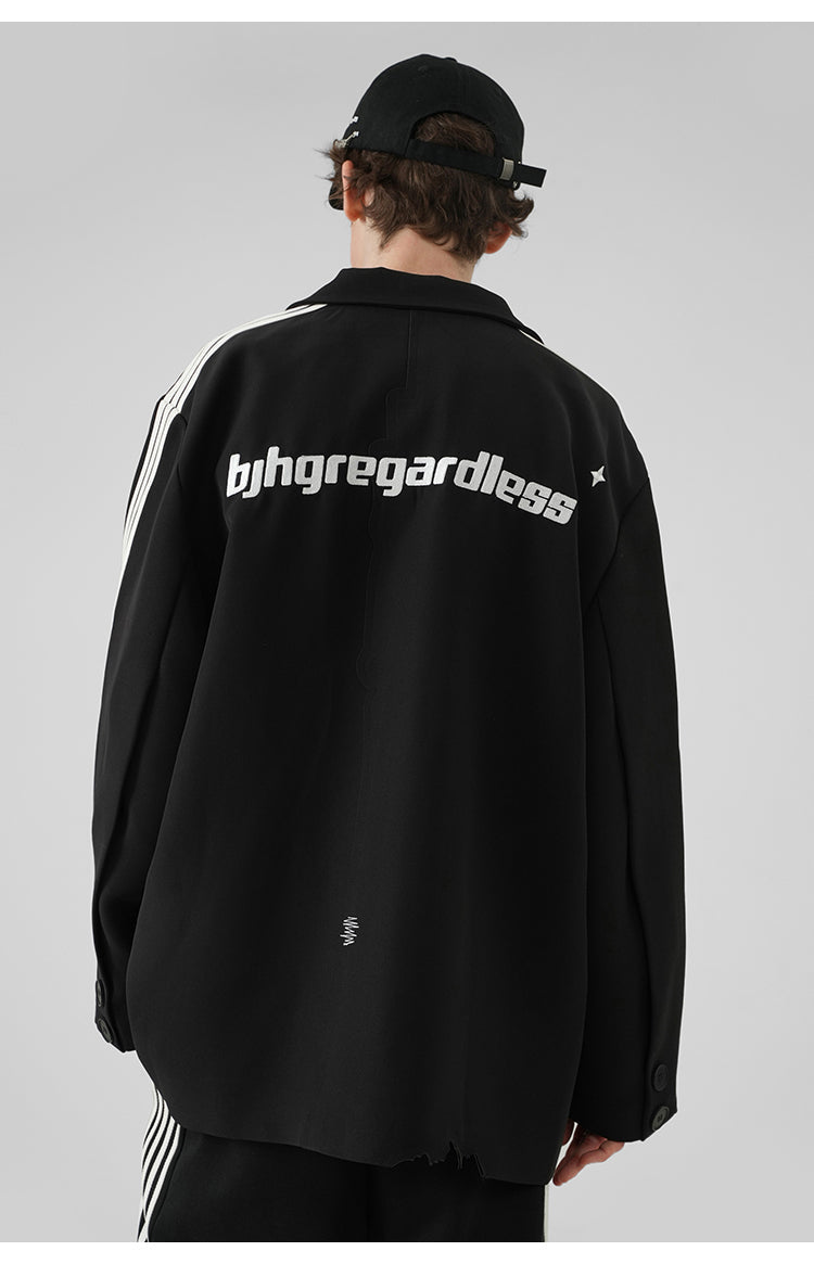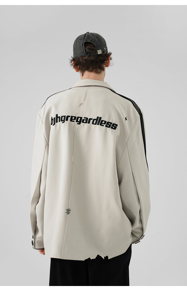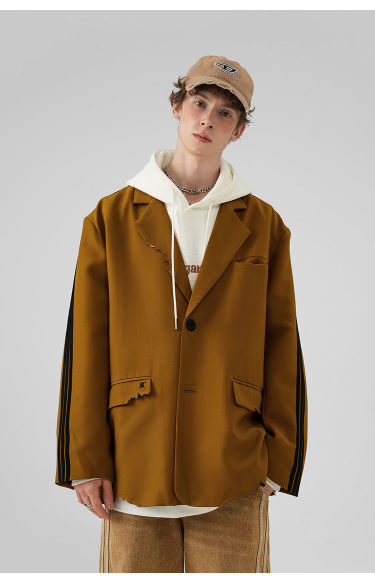 Elevate your style with the BJHG blazer, featuring unique distressing for a modern twist. This blazer boasts a notched lapel collar and a secure button closure, ensuring a polished look. Practical welt pocket at the chest and flap pockets provide functionality without sacrificing style.