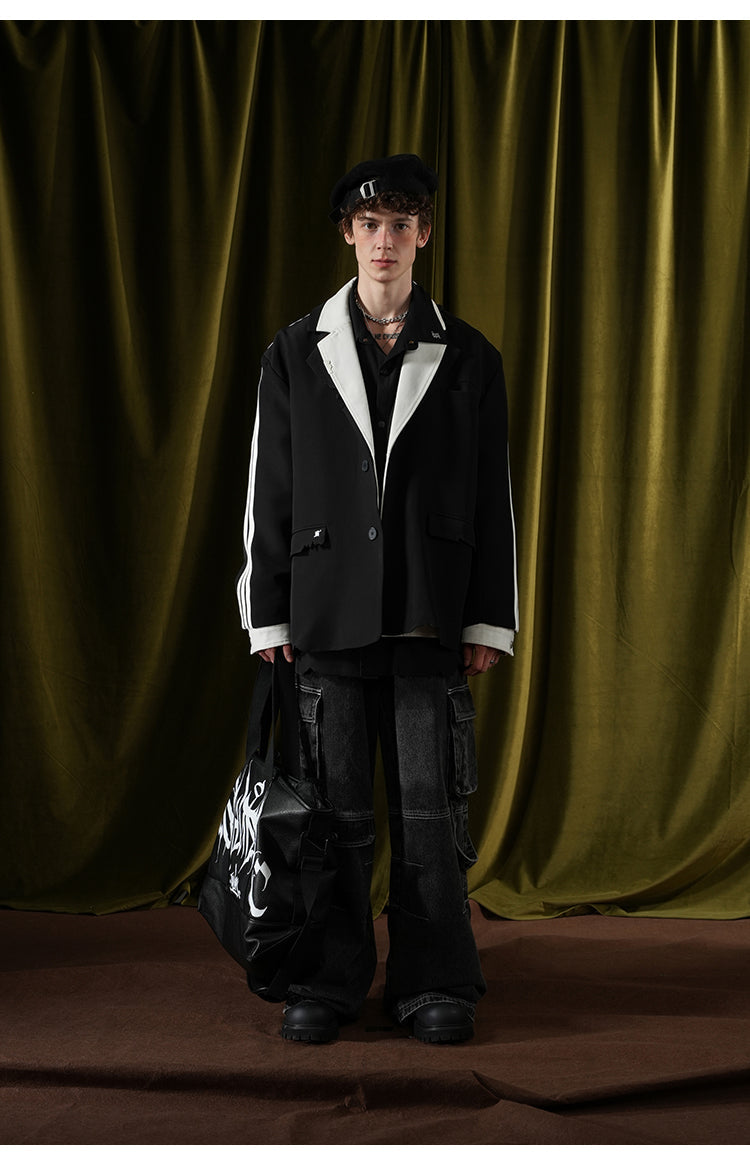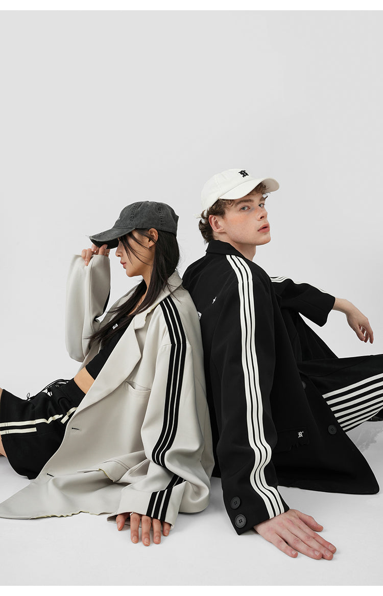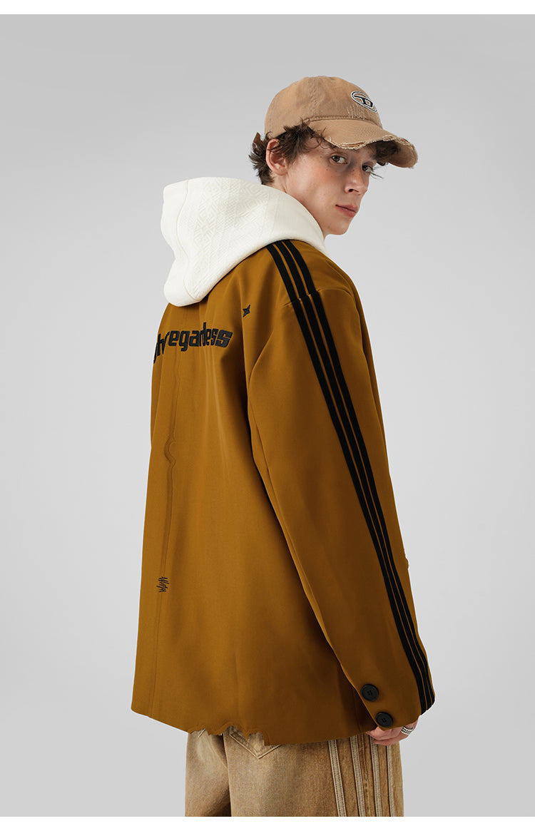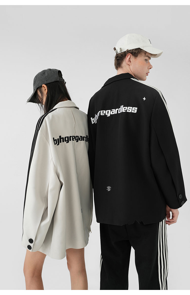Adorned with striped trim at the sleeves and a logo embroidered at the back, this blazer is perfect for making a statement. Crafted from a comfortable cotton-polyester blend, it offers a US/EU regular fit suitable for all body types.