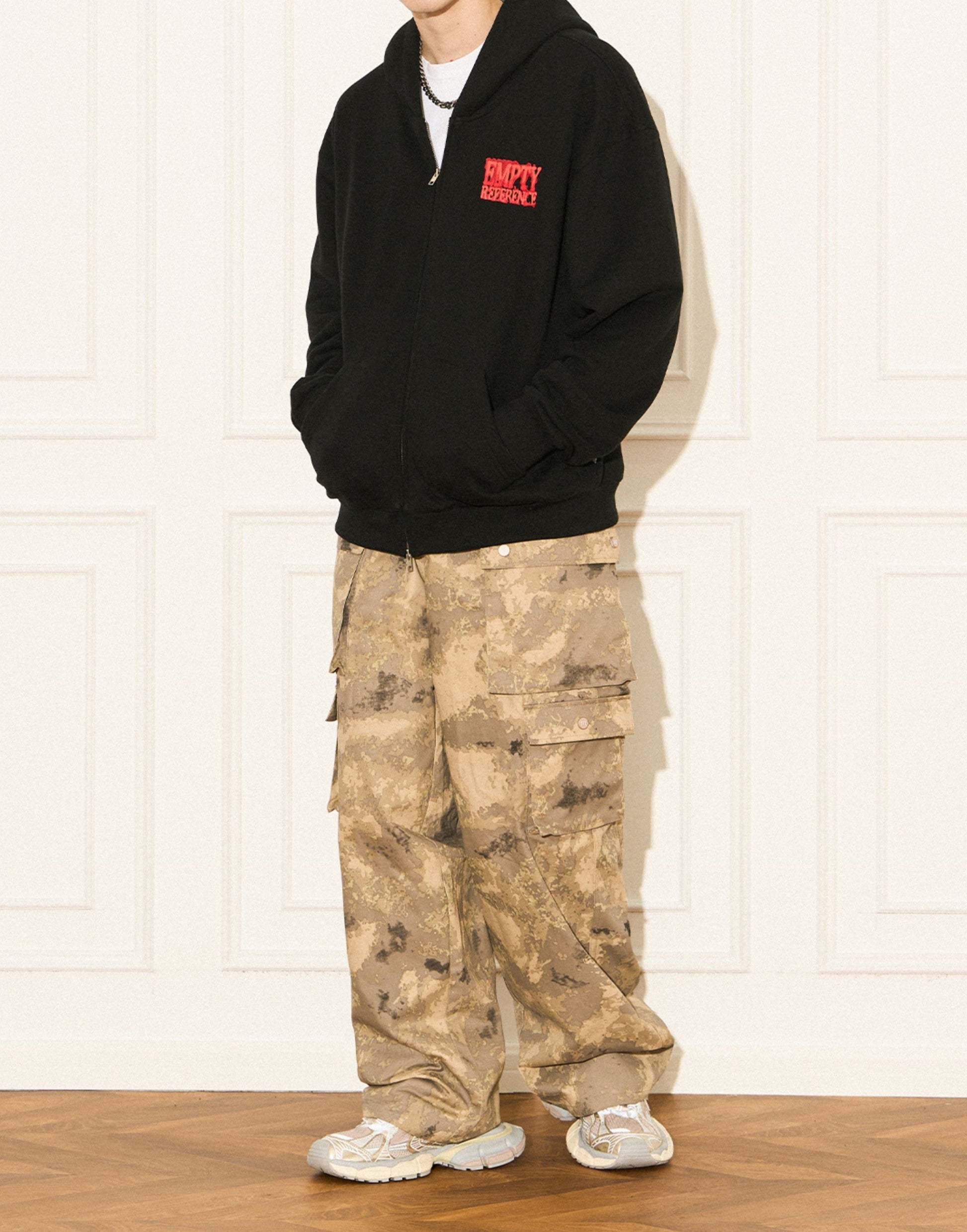 Introducing the EMPTY REFERENCE Relaxed-Fit Cotton Cargo Pants – the perfect blend of style and comfort. Featuring a trendy camouflage pattern, these pants are designed with belt loops and flap pockets at the outseams for added functionality.