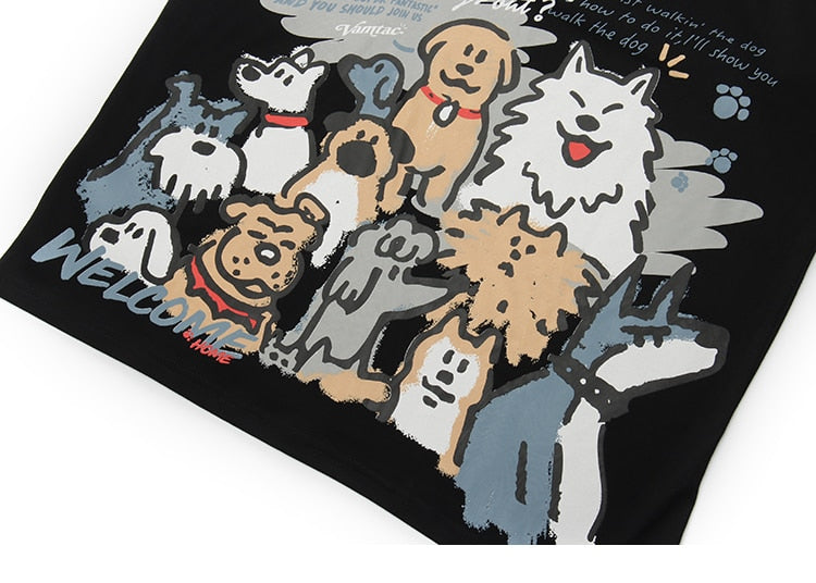 Elevate your casual wardrobe with our Cotton Short Sleeve Shirt. Featuring a comfortable rib knit crewneck and a playful dog design printed on both the front and back, this shirt is perfect for dog lovers. The text patch at the chest adds a unique touch to your look.