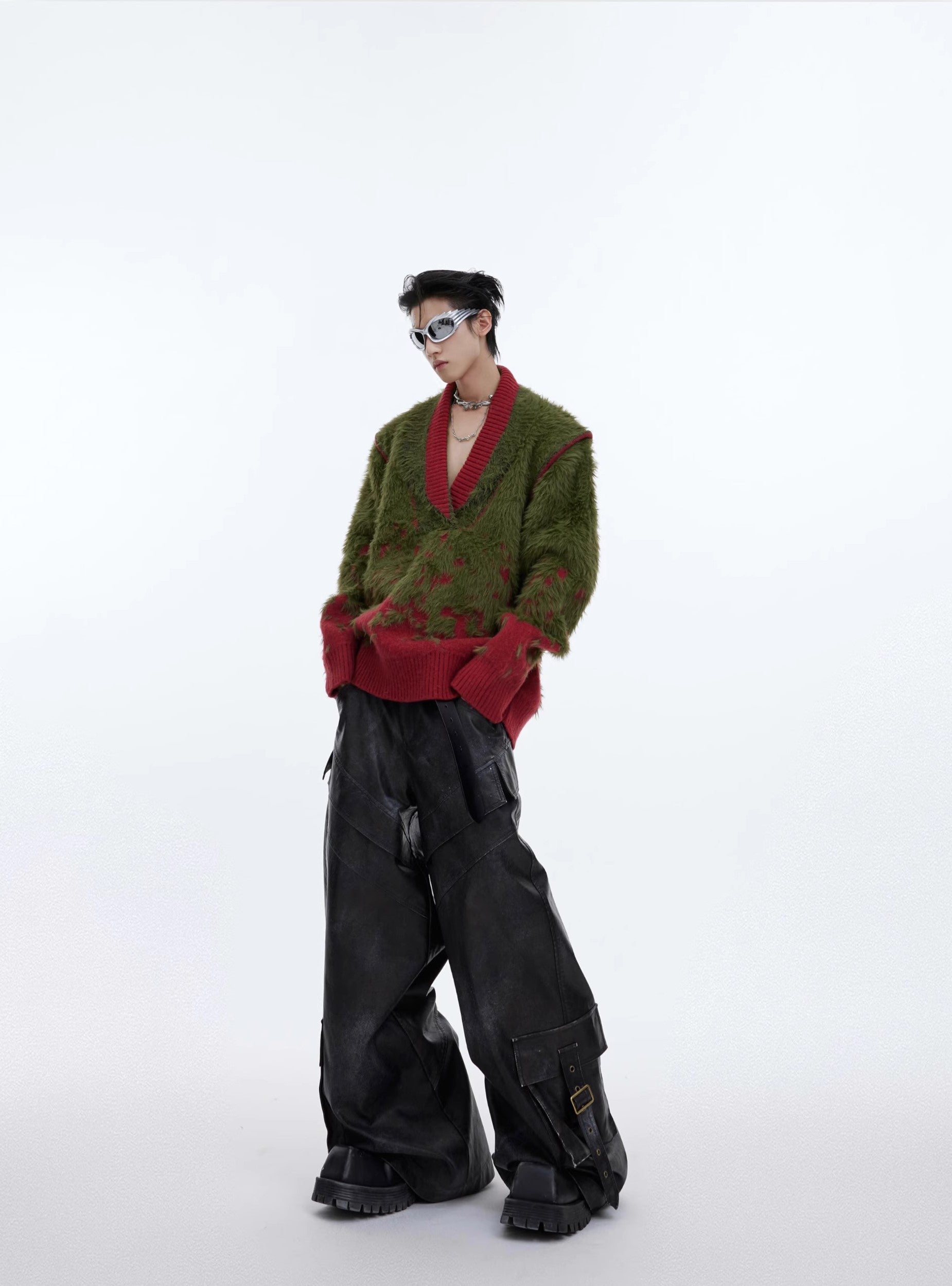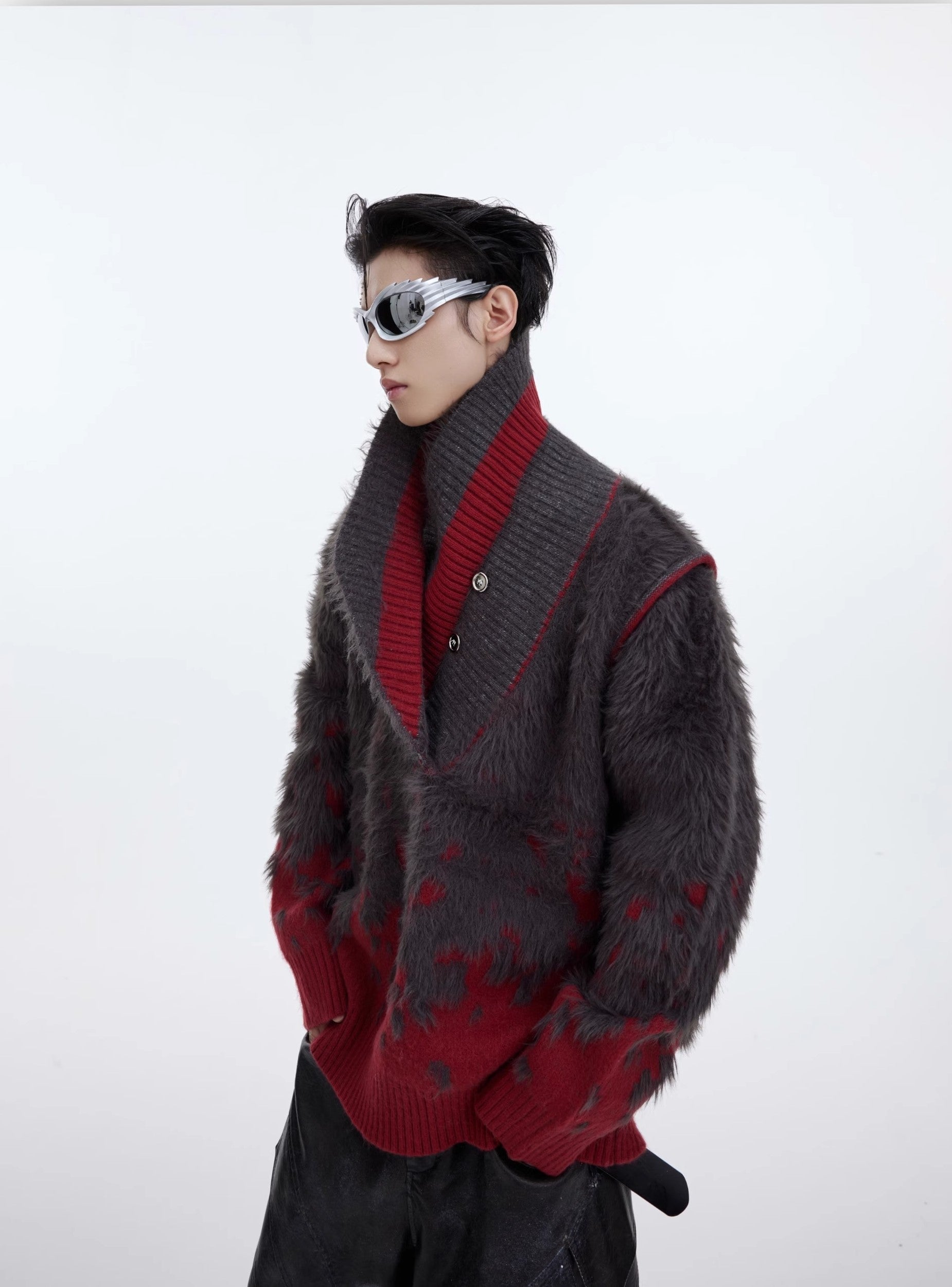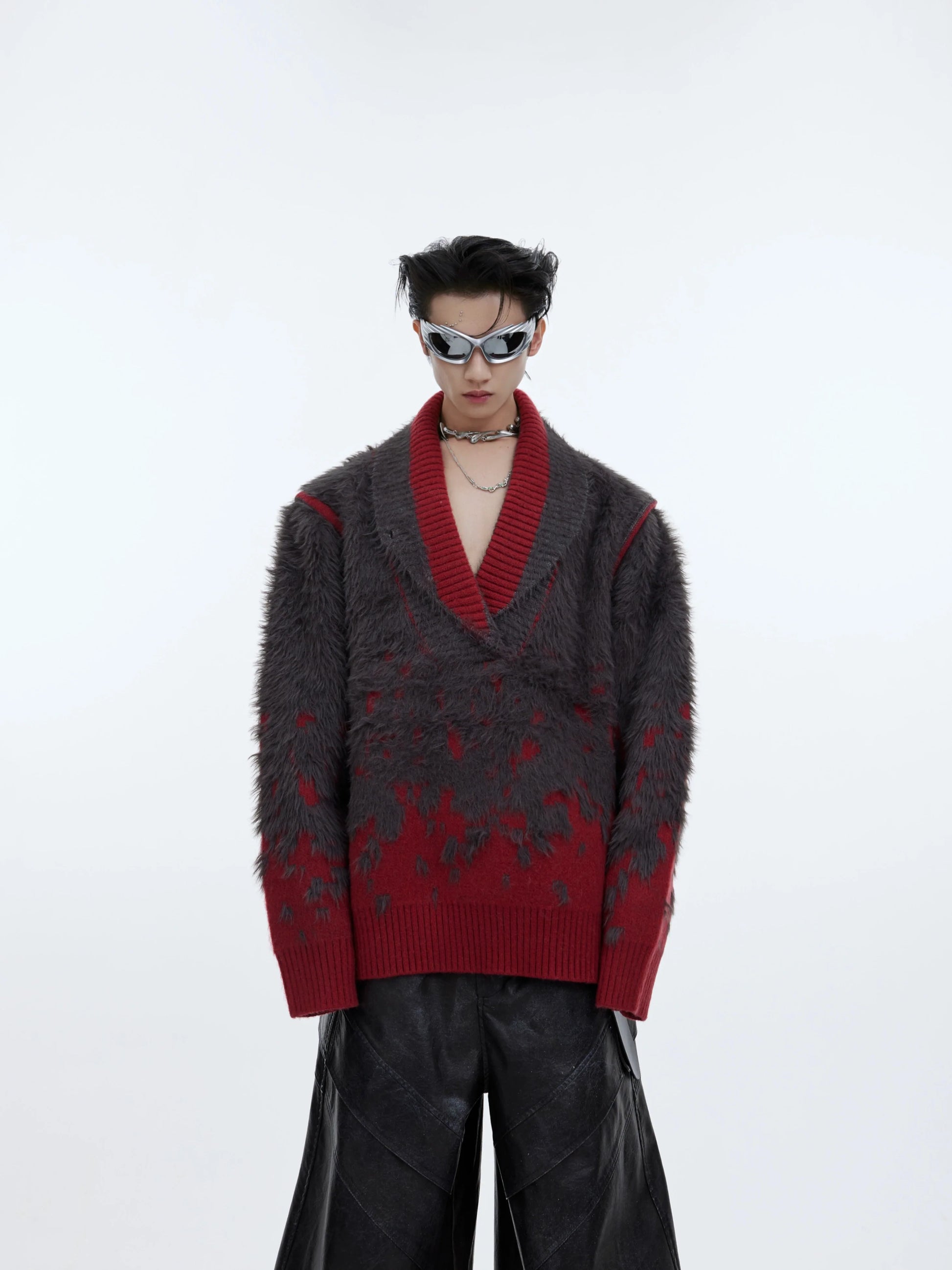 CulturE Nylon Sweater - Elevate your wardrobe with this stylish felt-textured wool-blend sweater. Featuring a chic contrast rib knit at the V-neck, hem, and cuffs, it's perfect for any occasion.