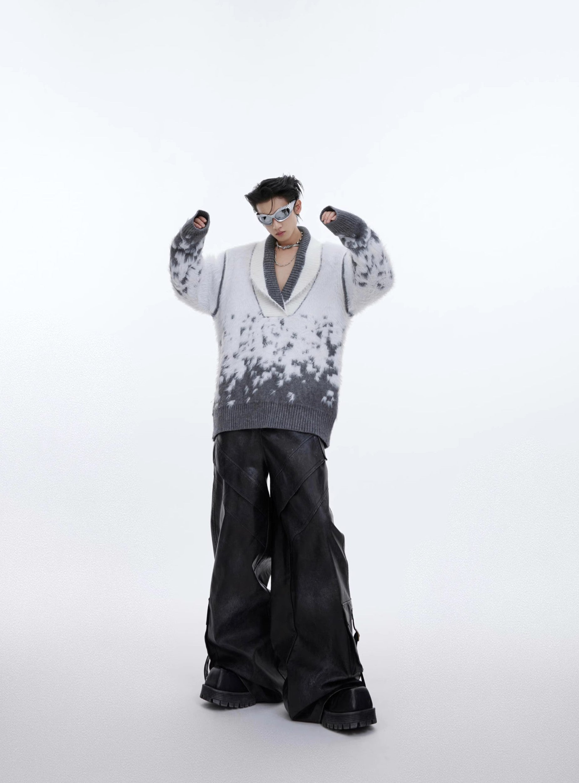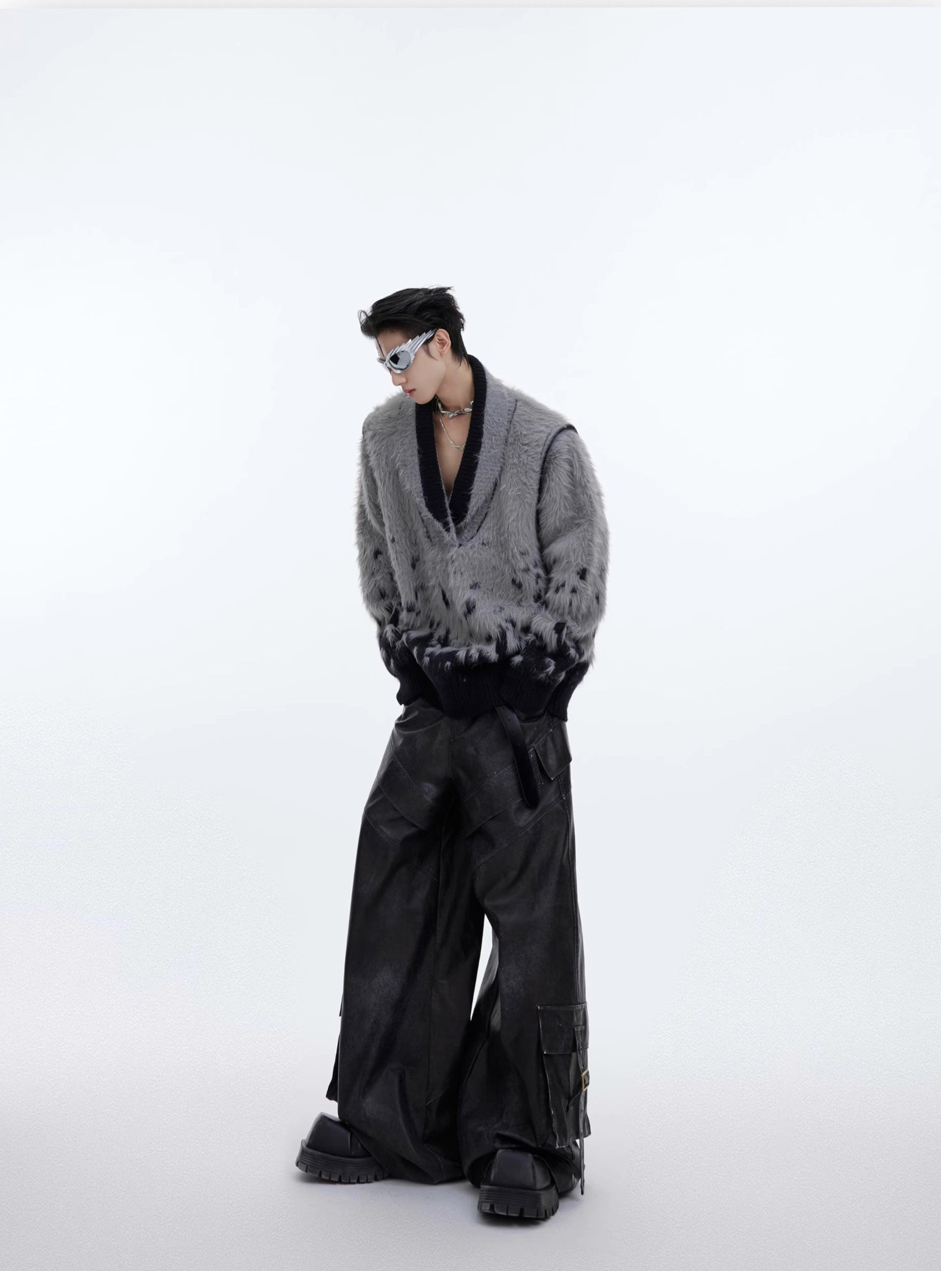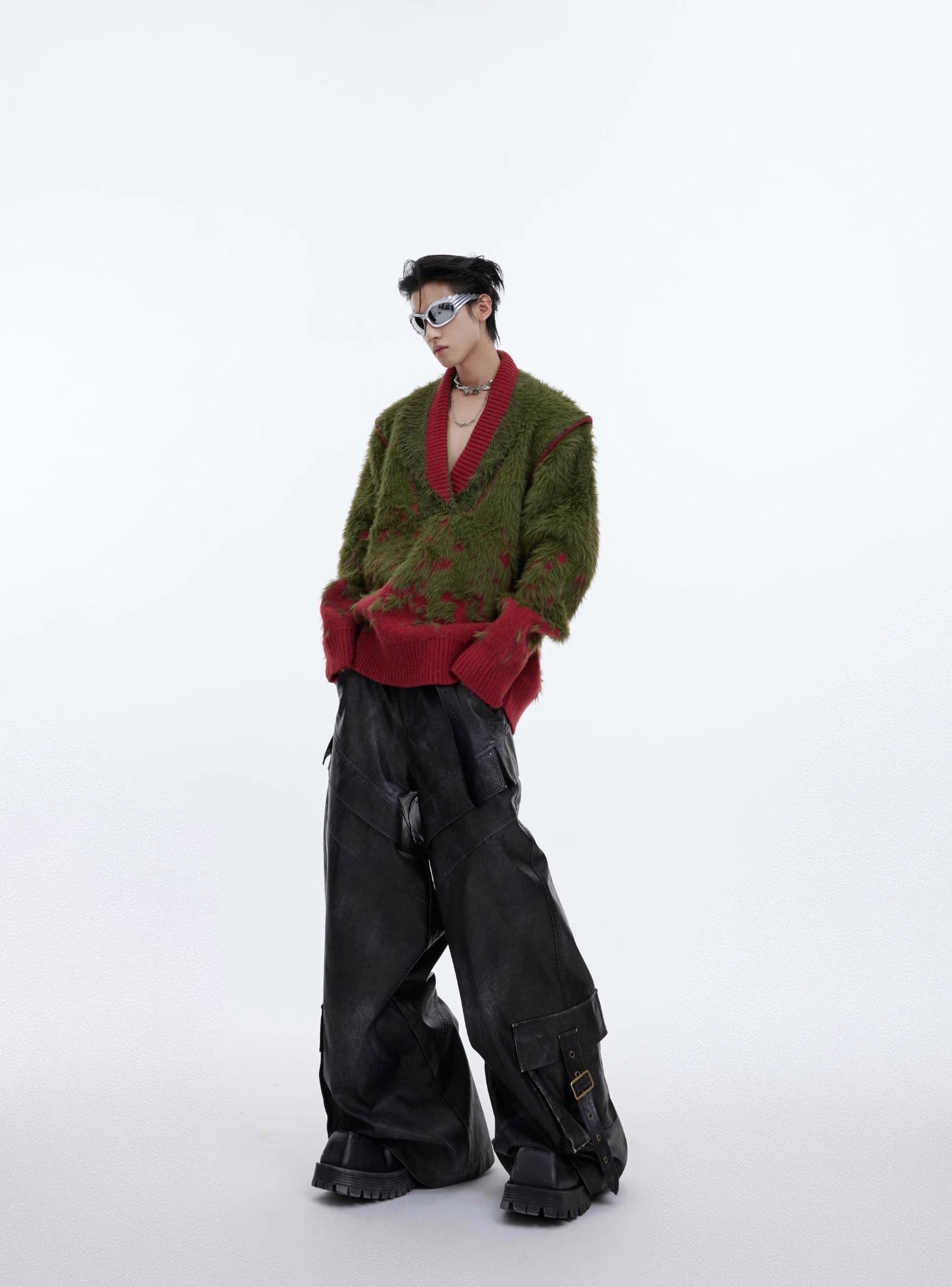 CulturE Nylon Sweater - Elevate your wardrobe with this stylish felt-textured wool-blend sweater. Featuring a chic contrast rib knit at the V-neck, hem, and cuffs, it's perfect for any occasion.