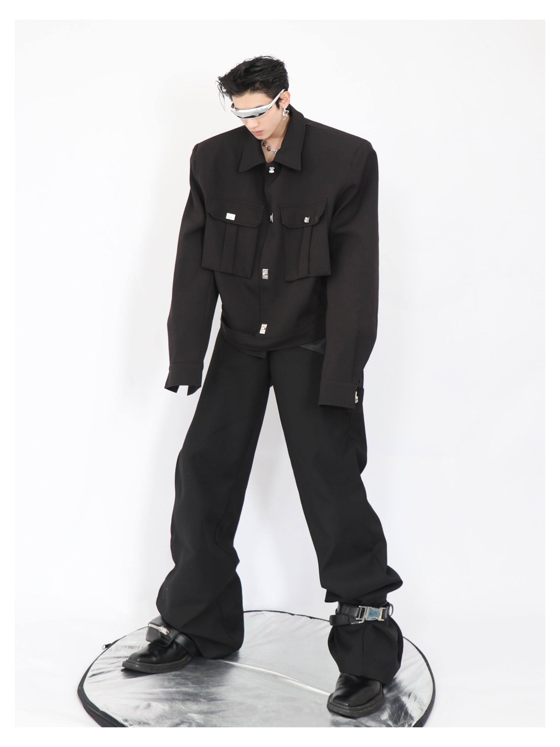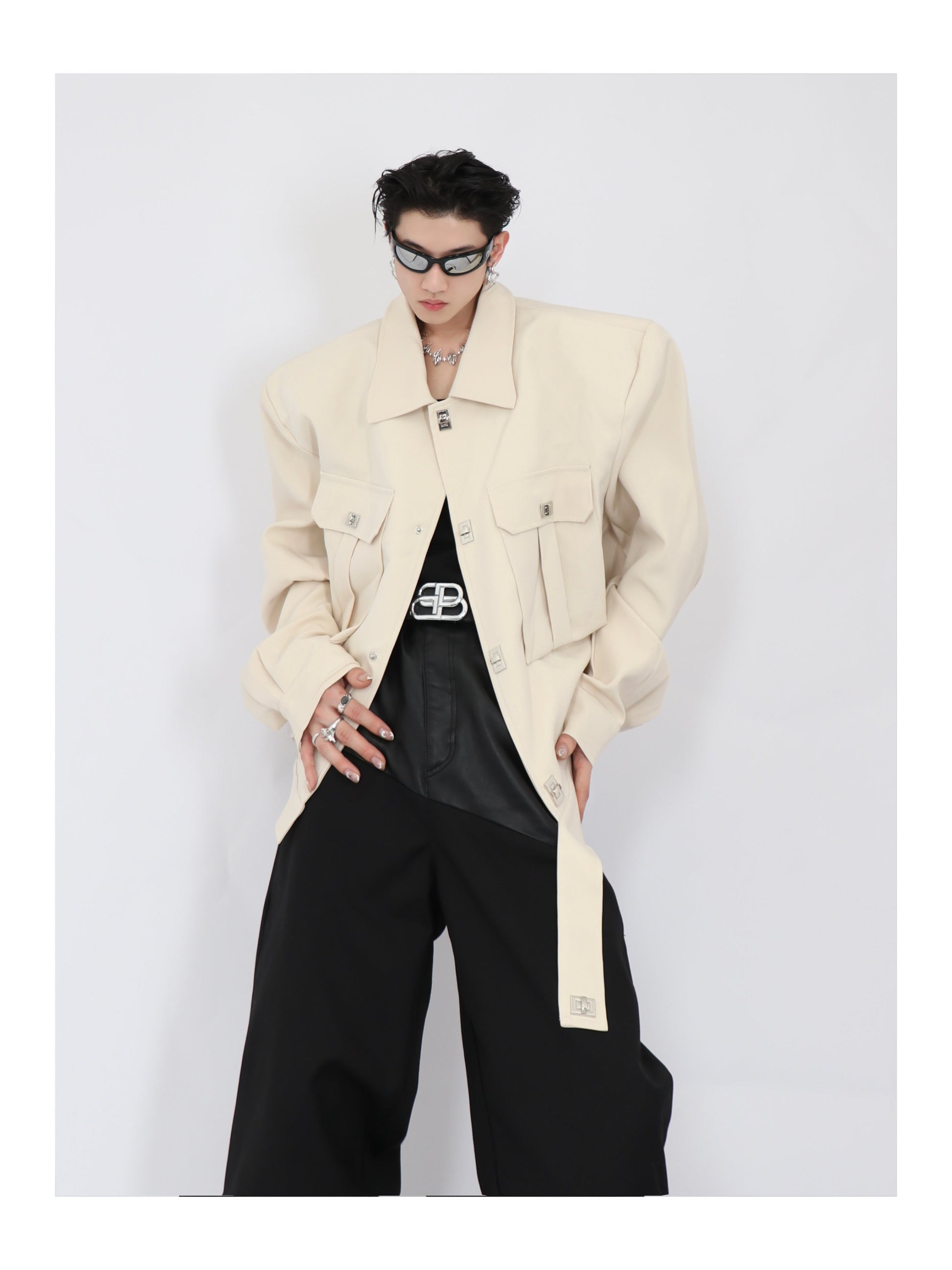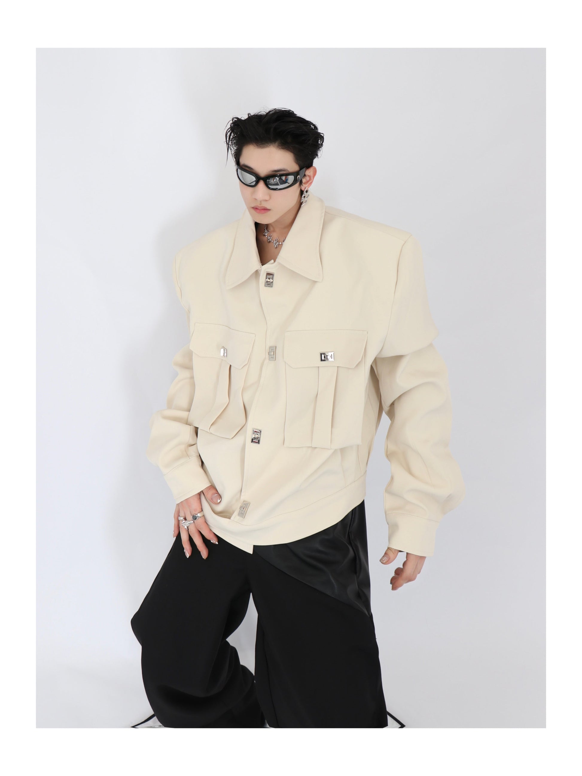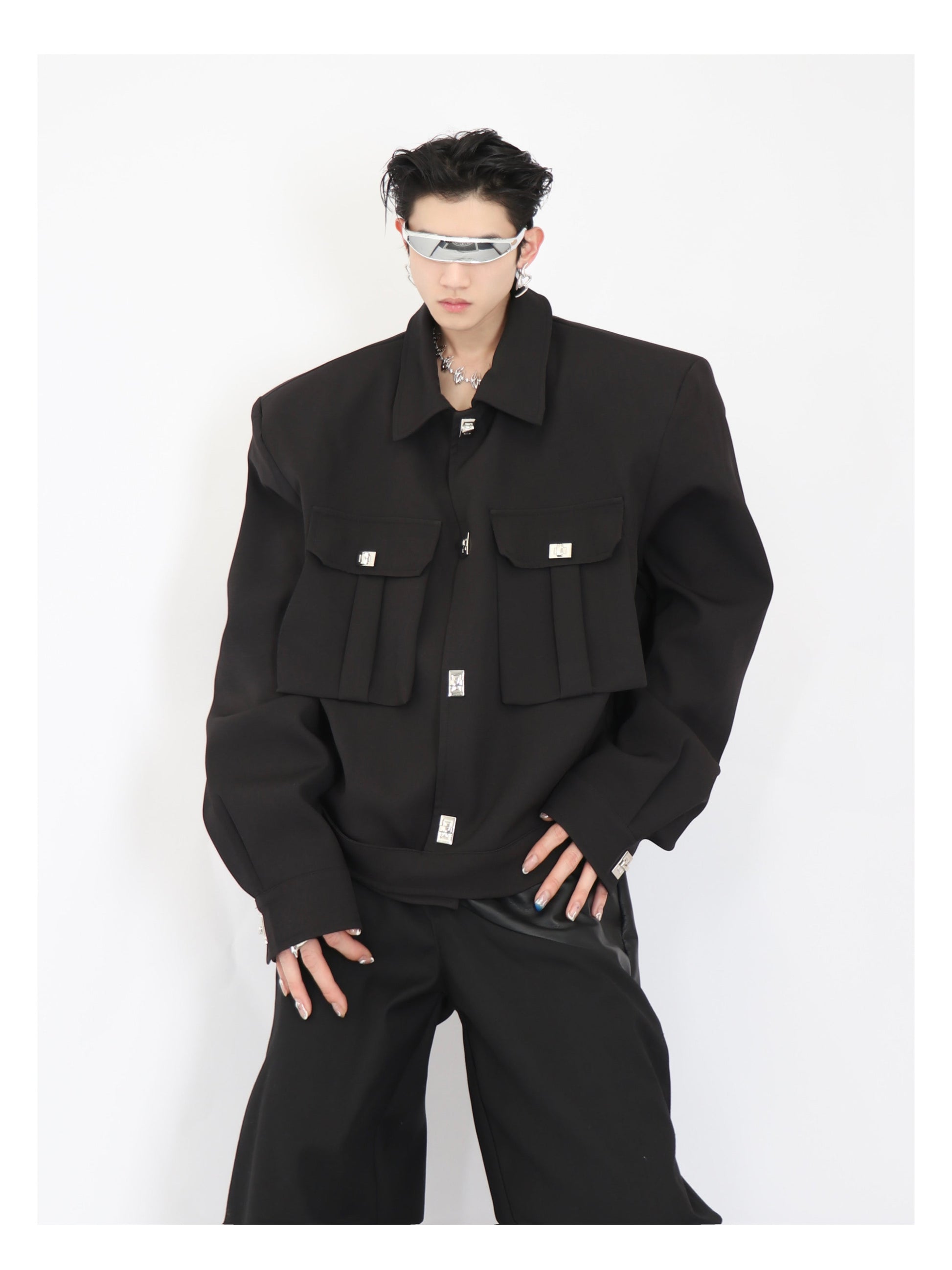 CulturE Jacket - Elevate your style with this versatile jacket featuring a spread collar and padded shoulders for a tailored look. The button closure and metal hardware add a touch of sophistication, while flap pockets offer practicality. Enjoy comfort with single-button cuffs that enhance the fit.