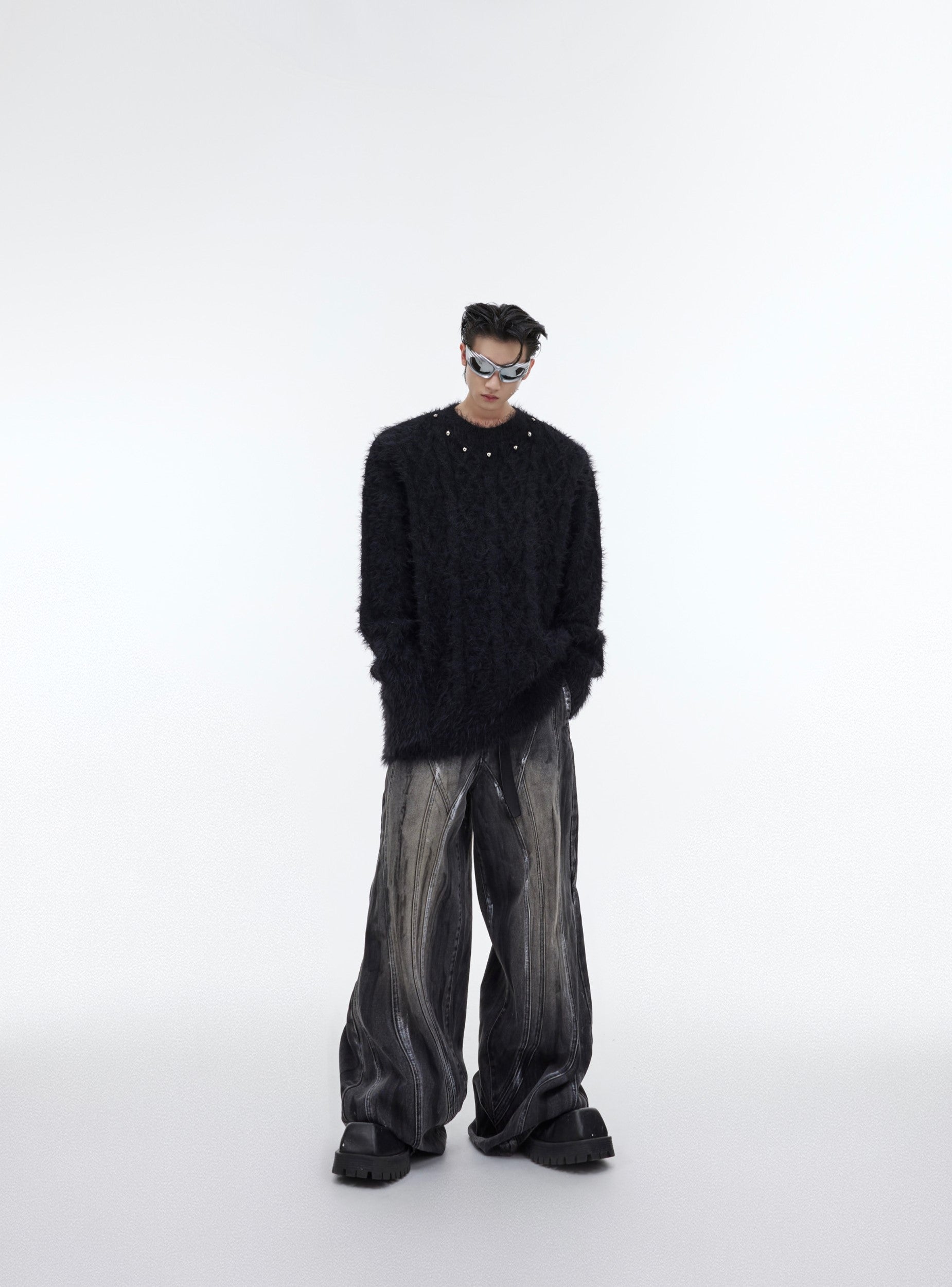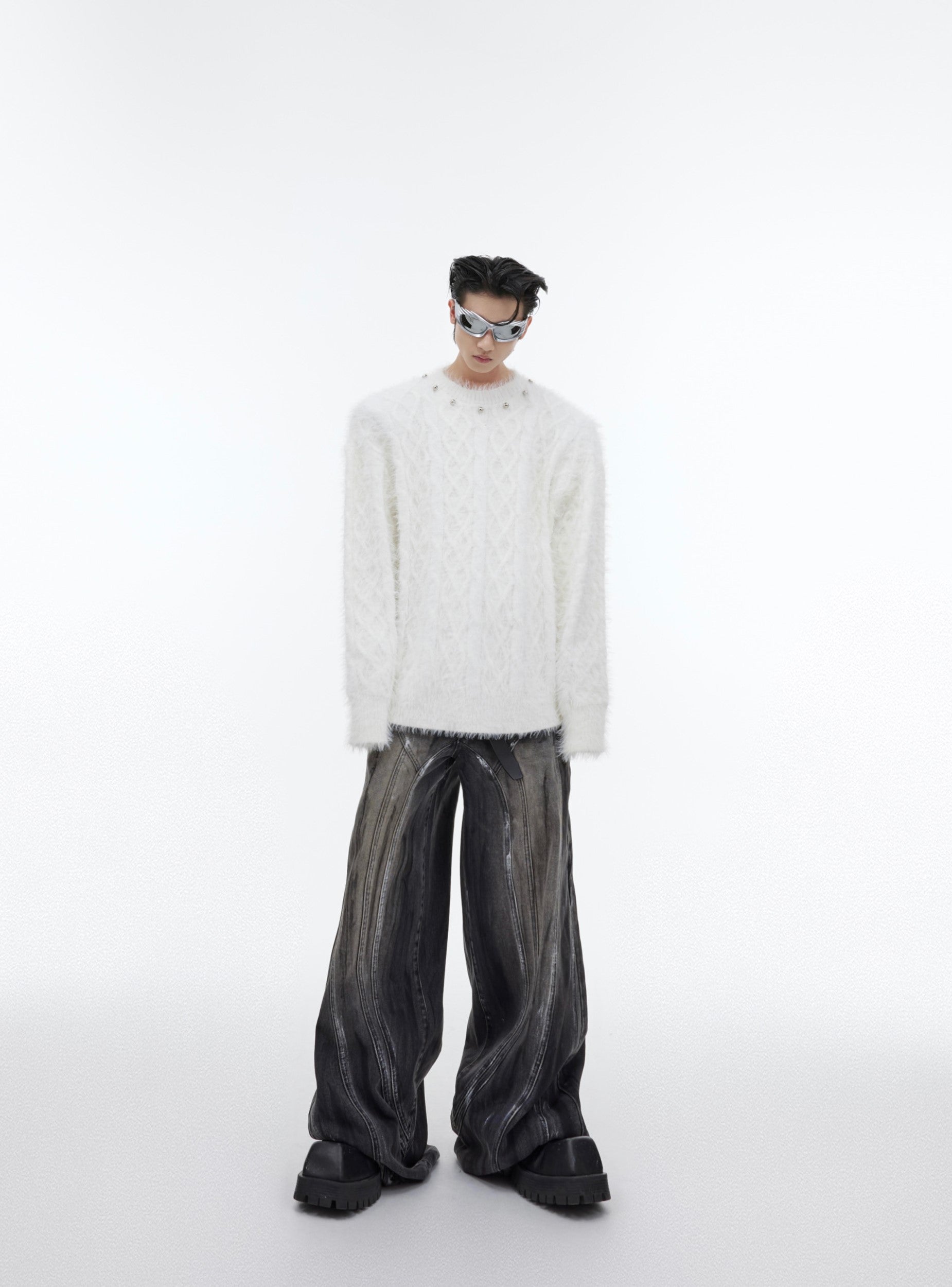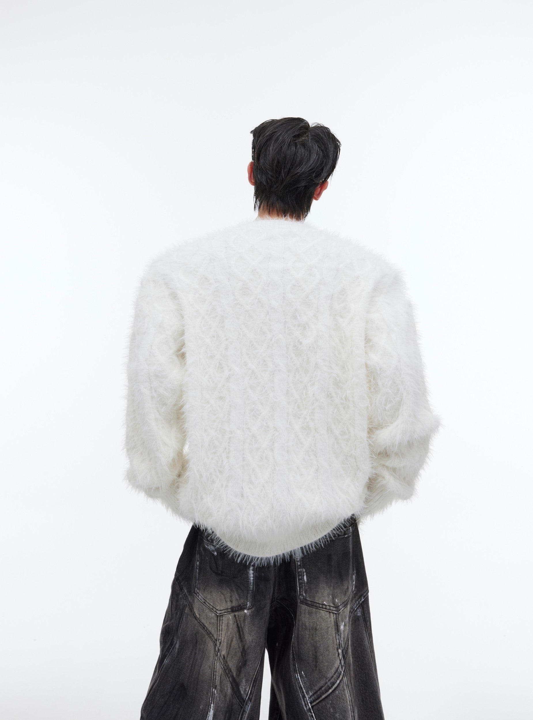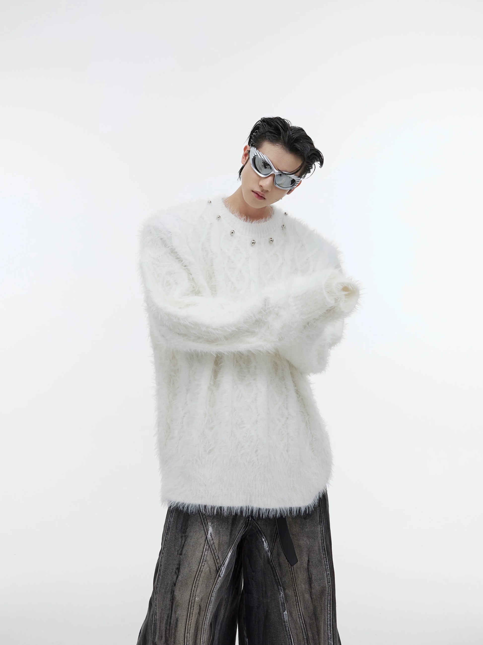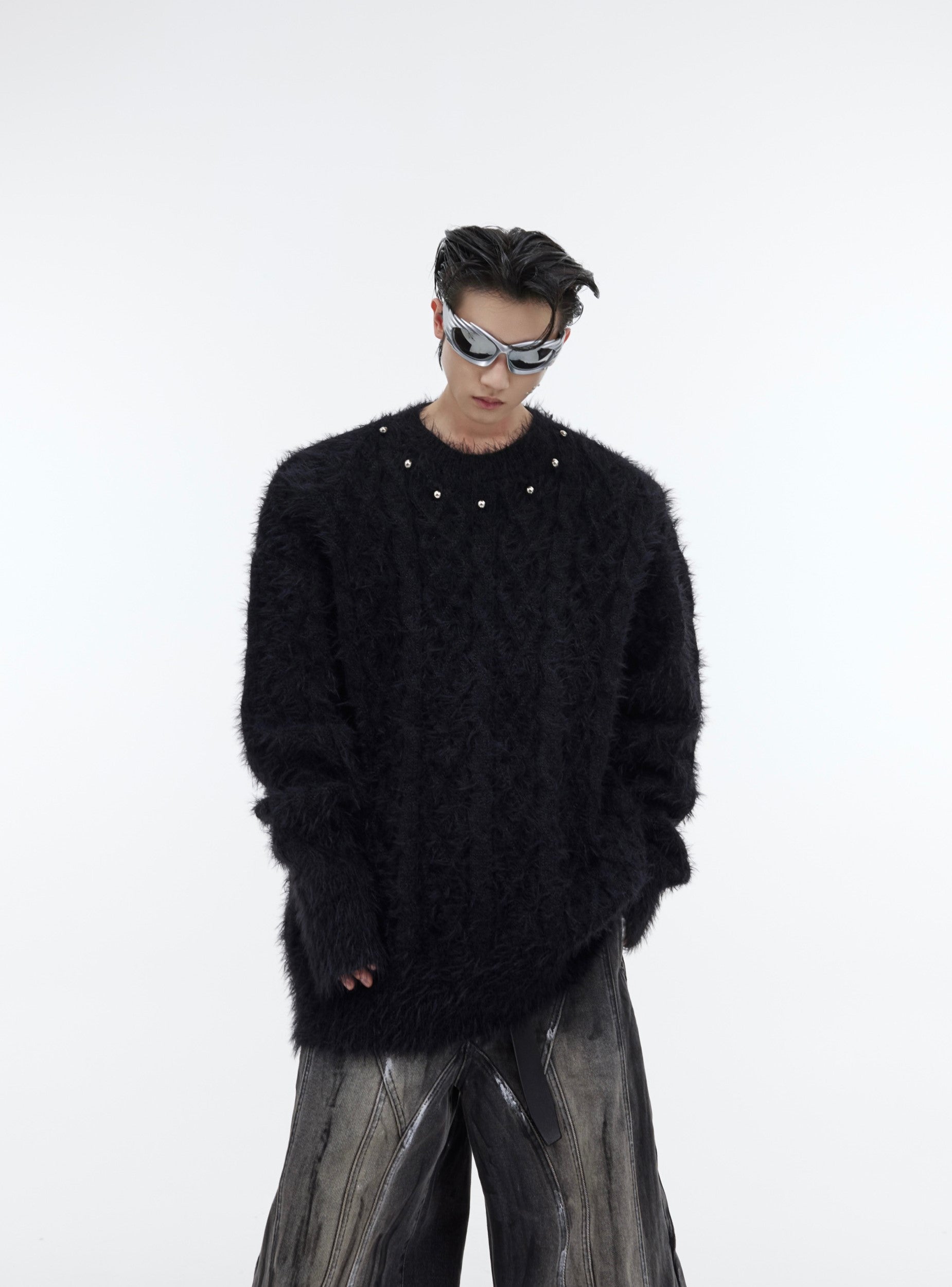 Introducing the CulturE Nylon-Blend Cable Knit Sweater, a perfect blend of style and comfort. This sweater features a rib knit crewneck, hem, and cuffs for a classic look, while the stud detailing at the collar adds a touch of modern flair. Enjoy the unique fraying at the edges for a trendy, lived-in vibe.