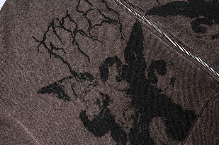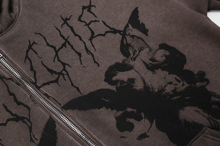 Experience ultimate comfort with our Cotton-blend faux-fur lined hoodie. This stylish piece features a rib knit hem and cuffs, dropped shoulders, and a convenient drawstring hood. Keep your essentials close in the kangaroo pocket, while the eye-catching angel graphic on the front and embroidered text on the back add a unique flair.