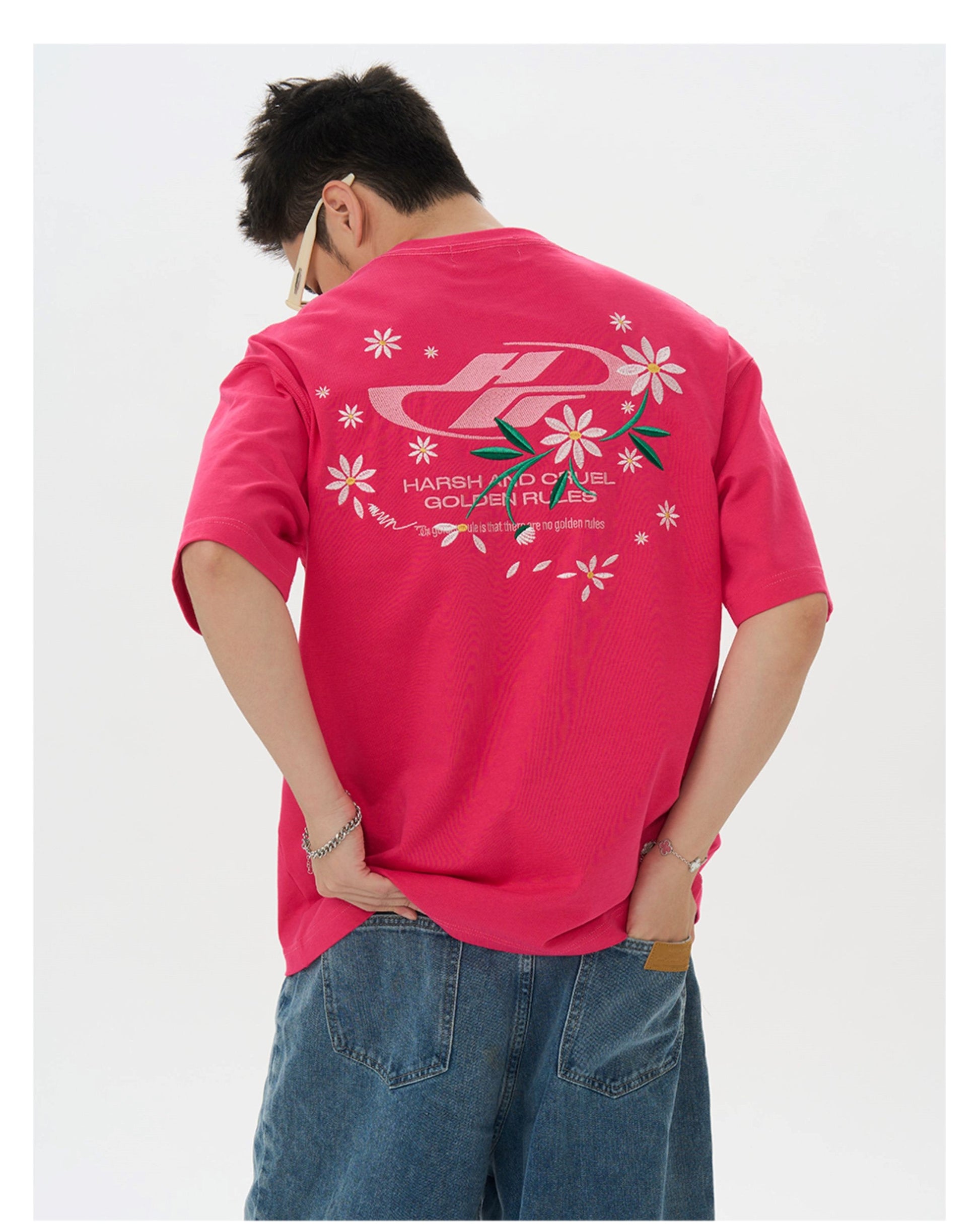 Adorned with a unique embroidered logo and flower design on both the front and back, it’s perfect for making a statement. Available in US/EU Regular Fit, this shirt combines fashion and comfort effortlessly.