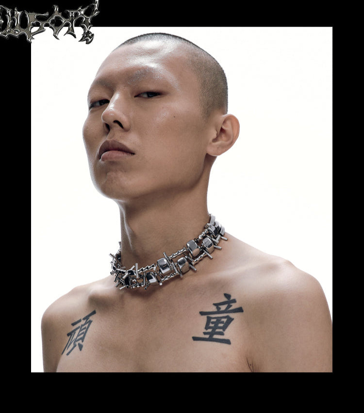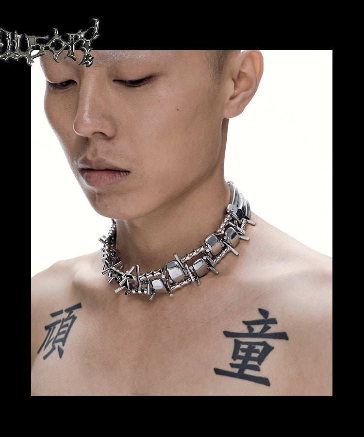 Illusory Specter's Embrace Necklace – Experience the perfect blend of avant-garde design and gothic elegance. This stunning necklace features an intricate, continuous pattern, eliminating the need for a central pendant.