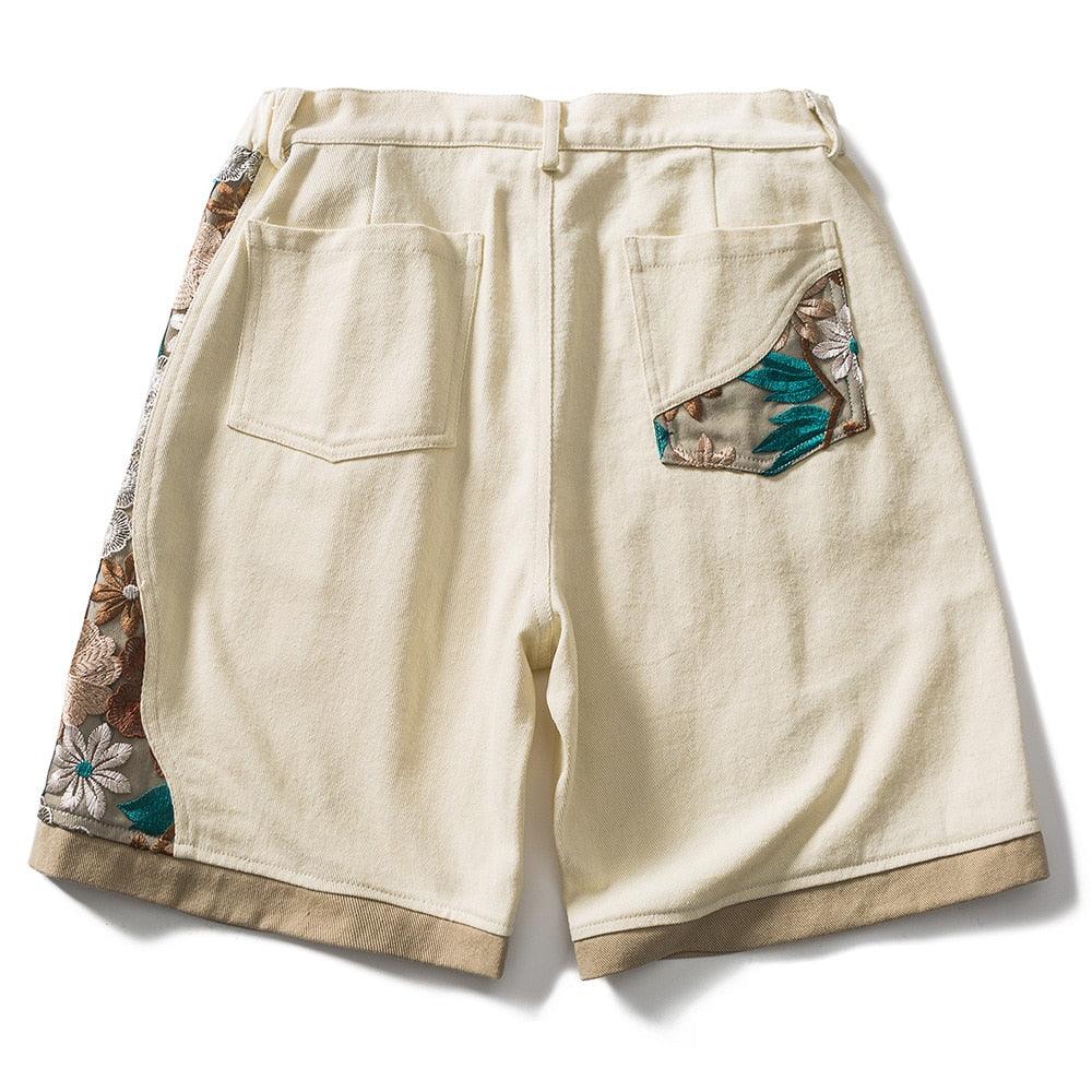 Floral Embroidery Patchwork Shorts