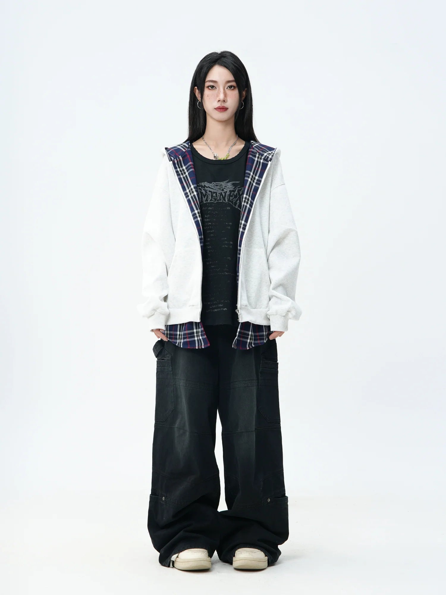 JUMPNEXT Plaid Layered Zip Jacket with Lining