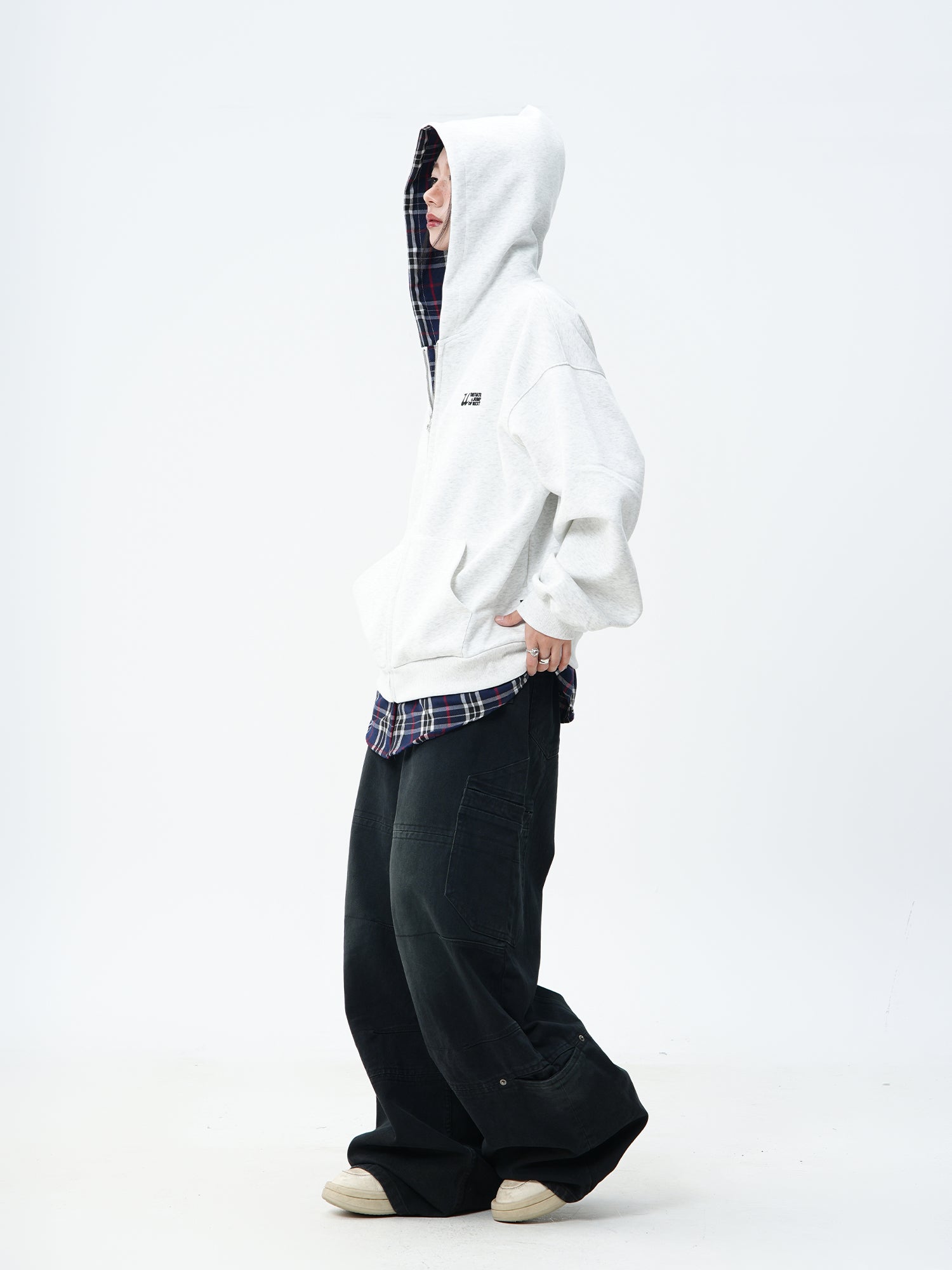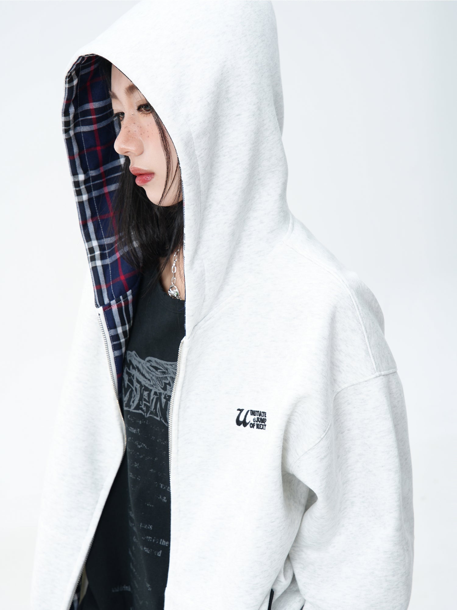 JUMPNEXT Plaid Layered Zip-Up Jacket with Lining