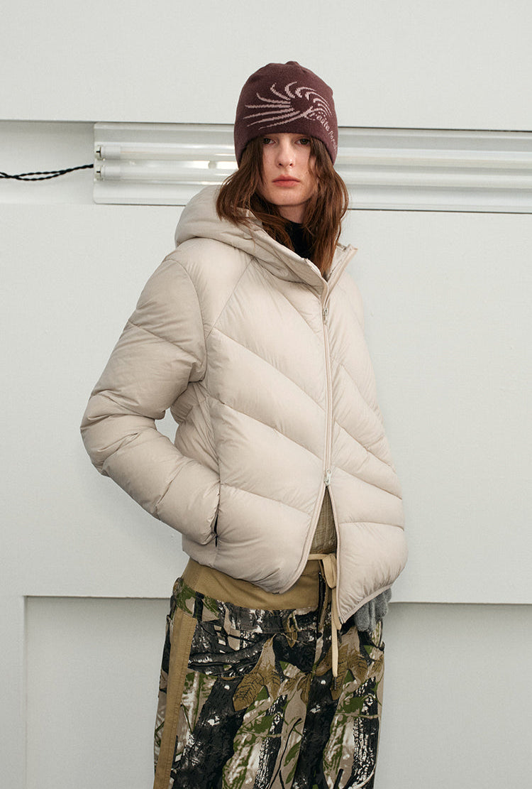 Crafted from high-performance quilted insulation, it delivers exceptional warmth without the bulk. The structured hood offers extra protection against the elements, while discreet zippered side pockets add practicality without compromising style.