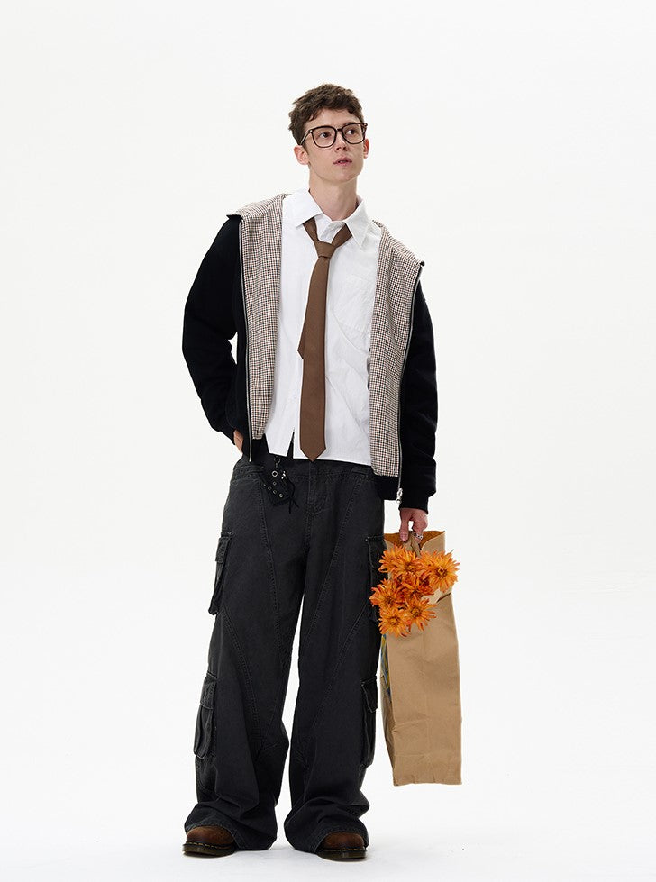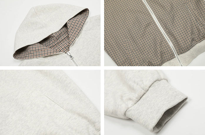 MADWITCH Double-Sided Plaid Zip-Up Hoodie
