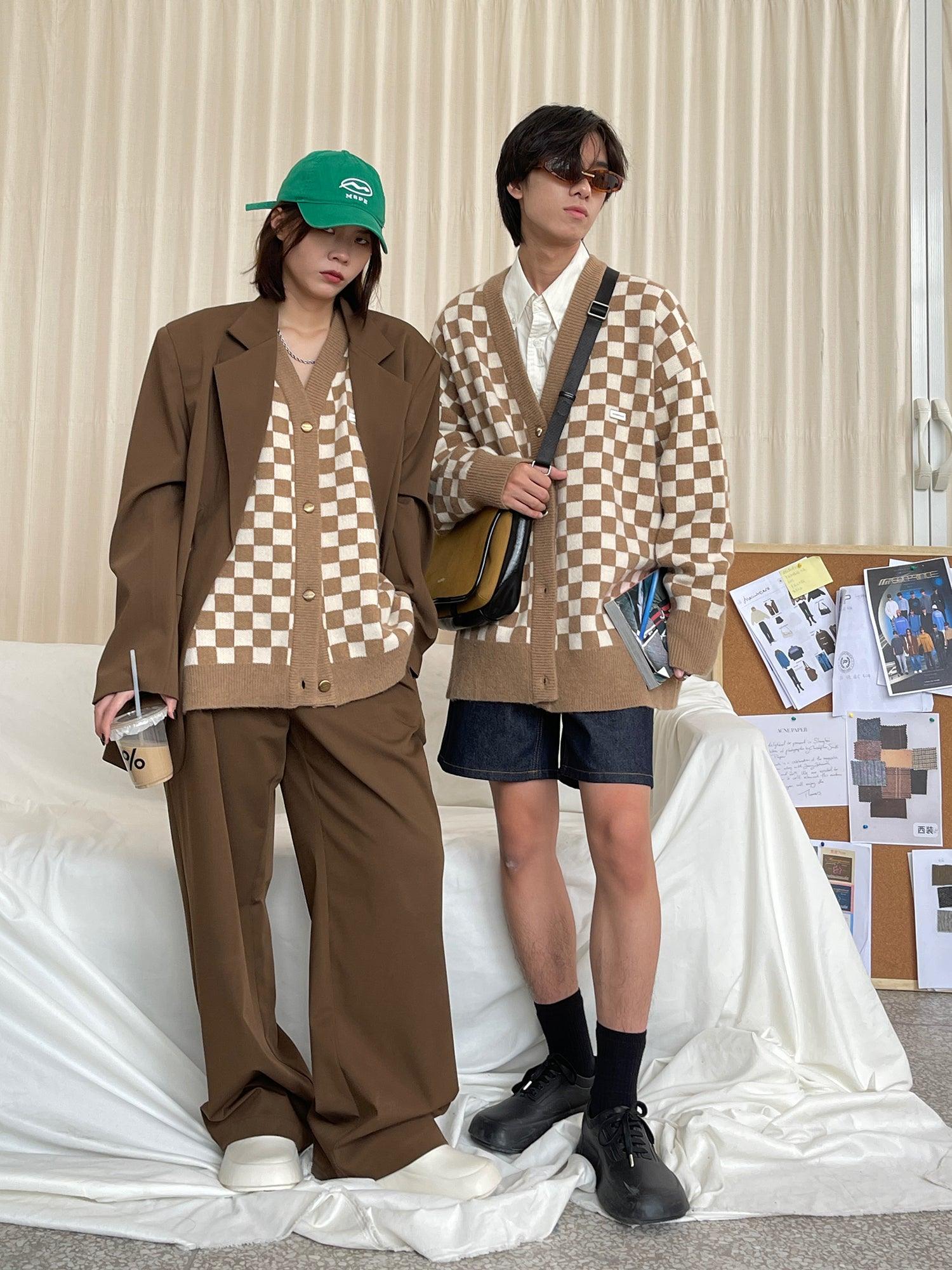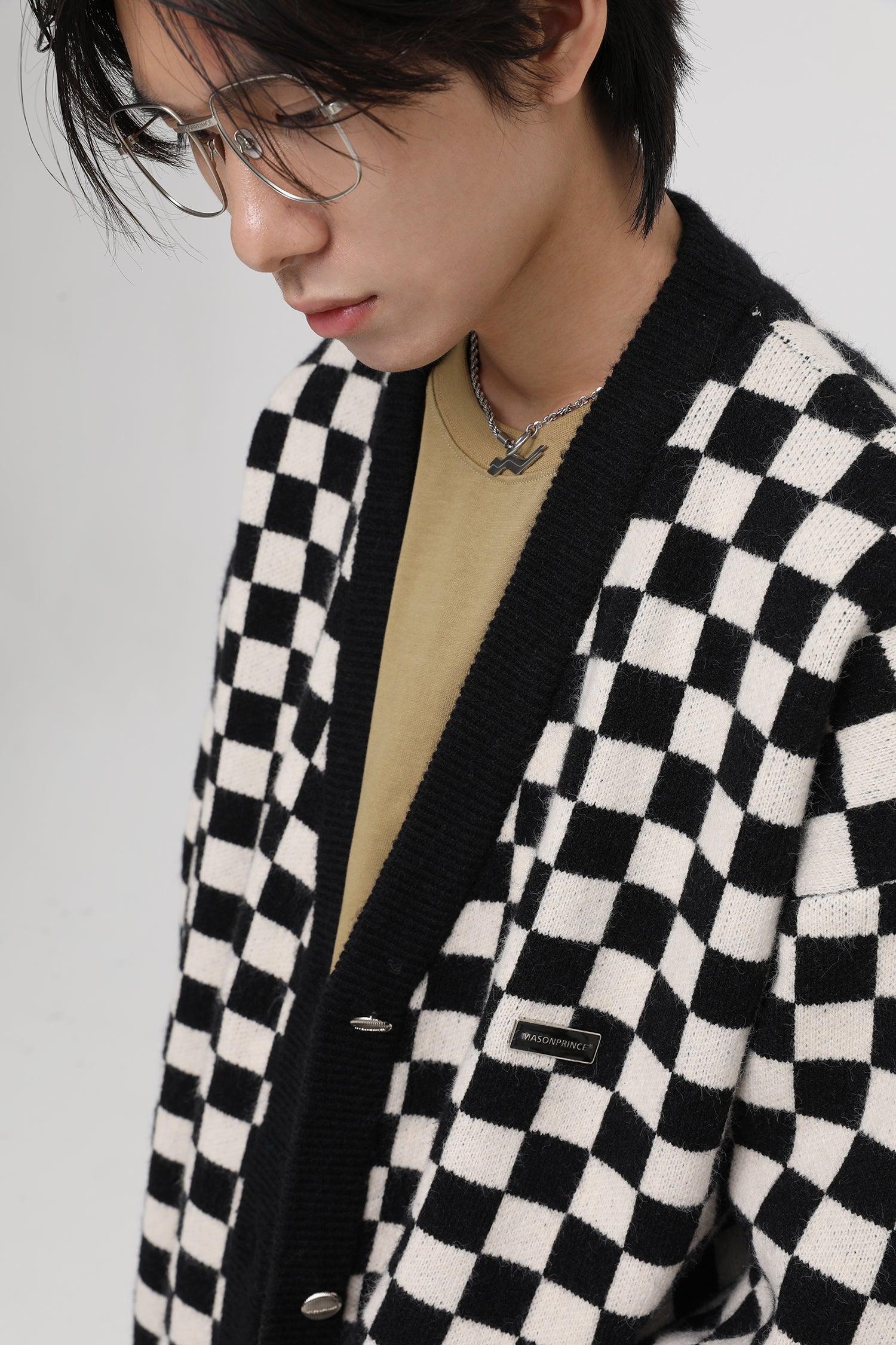 Elevate your style with the MASONPRINCE Knit Cardigan, featuring a trendy checkered graphic knit design. This cardigan includes two side pockets for added convenience and is crafted with ribbed self fabric at the placket, cuffs, and hem for a snug fit. Adorned with a Masonprince logo badge on the chest and complemented by silver buttons and hardware, it’s the perfect blend of fashion and function.