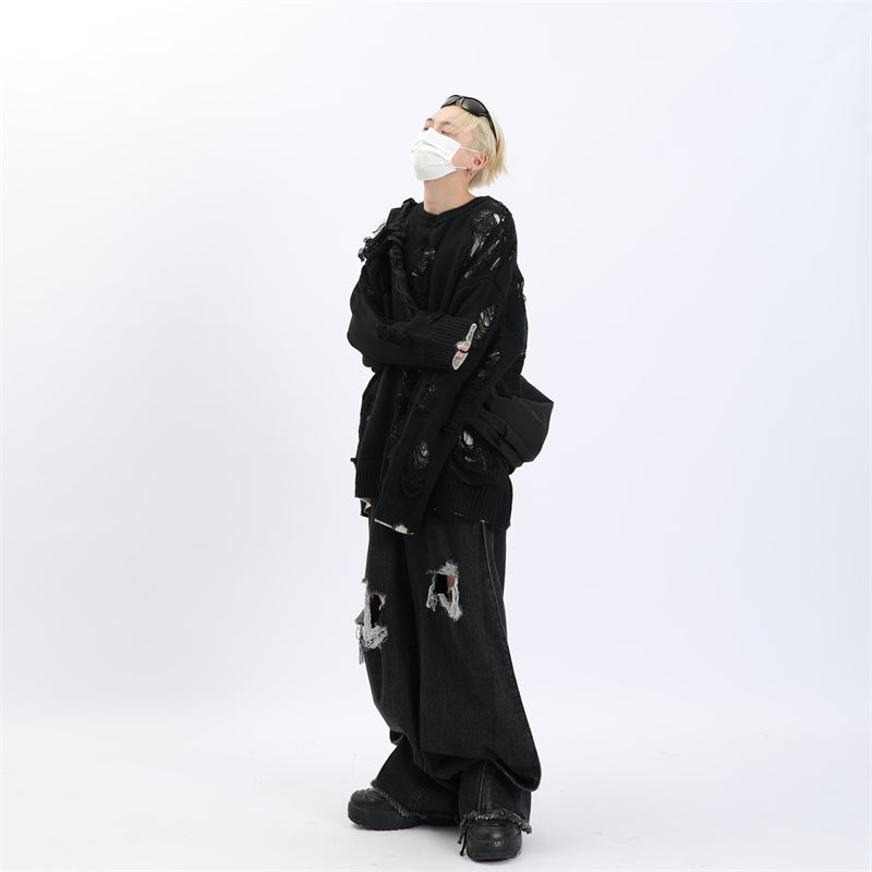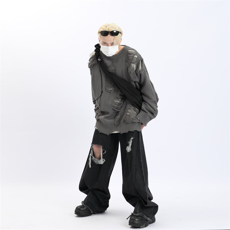 MaxDstr Ripped Grunge Sweater - Elevate your style with this edgy yet comfortable sweater made from heavyweight knit blend cotton.