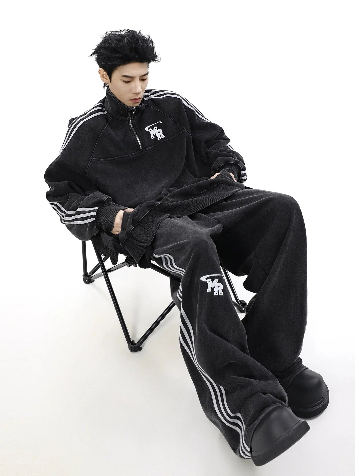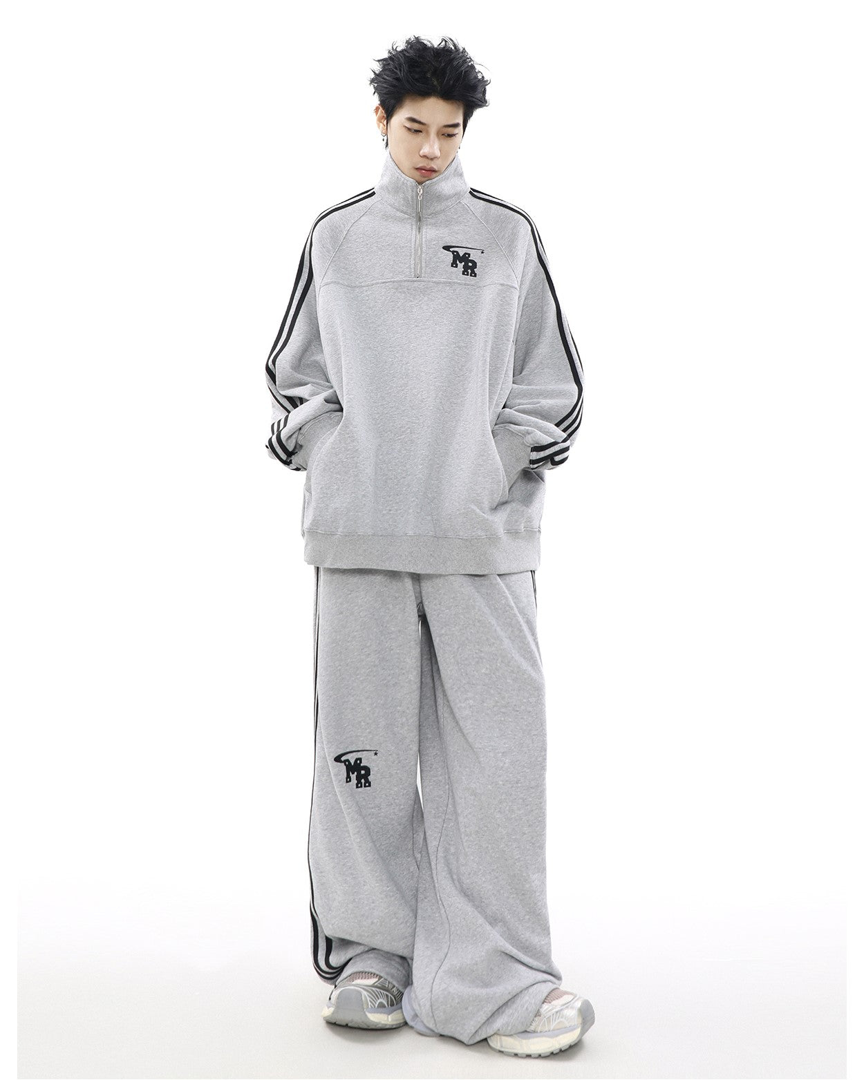 This versatile jacket features a rib knit stand collar, ribbed cuffs and hem, and a convenient half-zip closure. The striking jacquard stripes on the sleeves and the stylish logo patch at the chest add a unique touch. Plus, the kangaroo pocket offers practicality without sacrificing style.