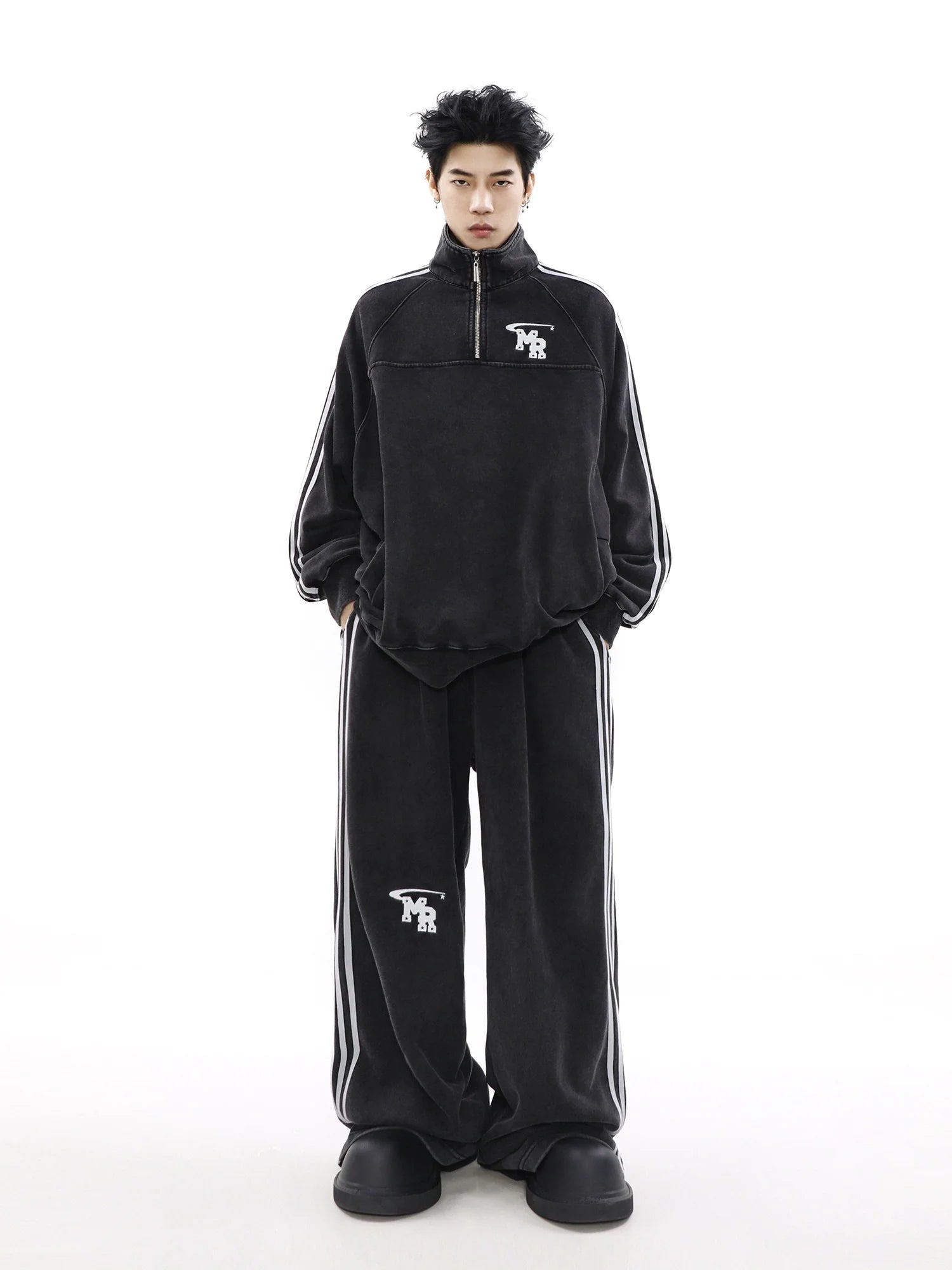 MRNEARLY Relaxed Fit Wide Leg Track Pants