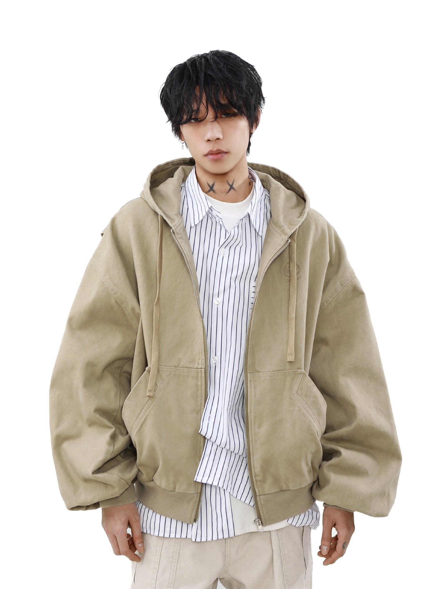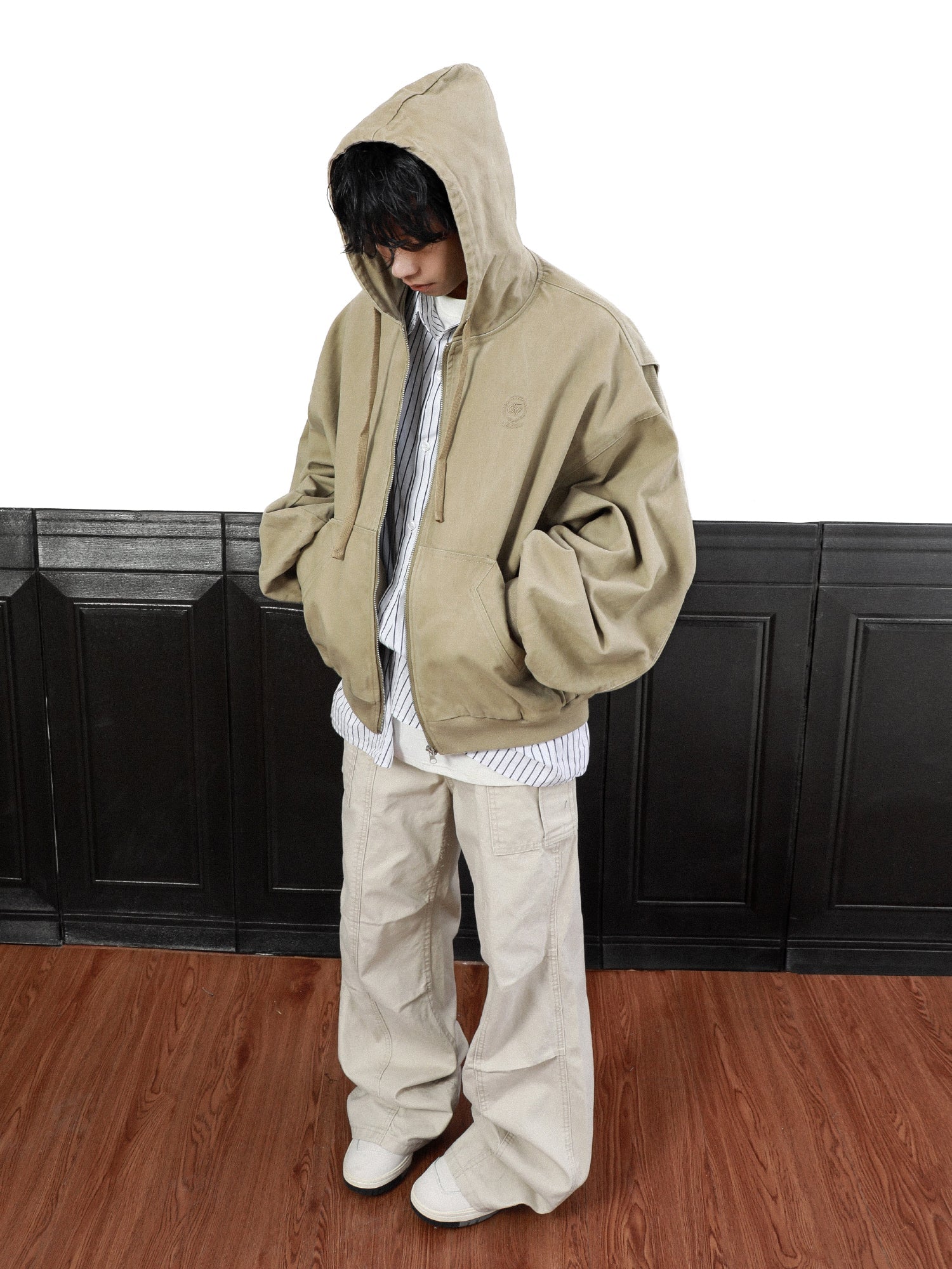 Introducing our elegant zip jacket, a modern twist on a classic silhouette. Crafted from 100% heavyweight cotton, it features a faded wash for a stylish, worn-in look.