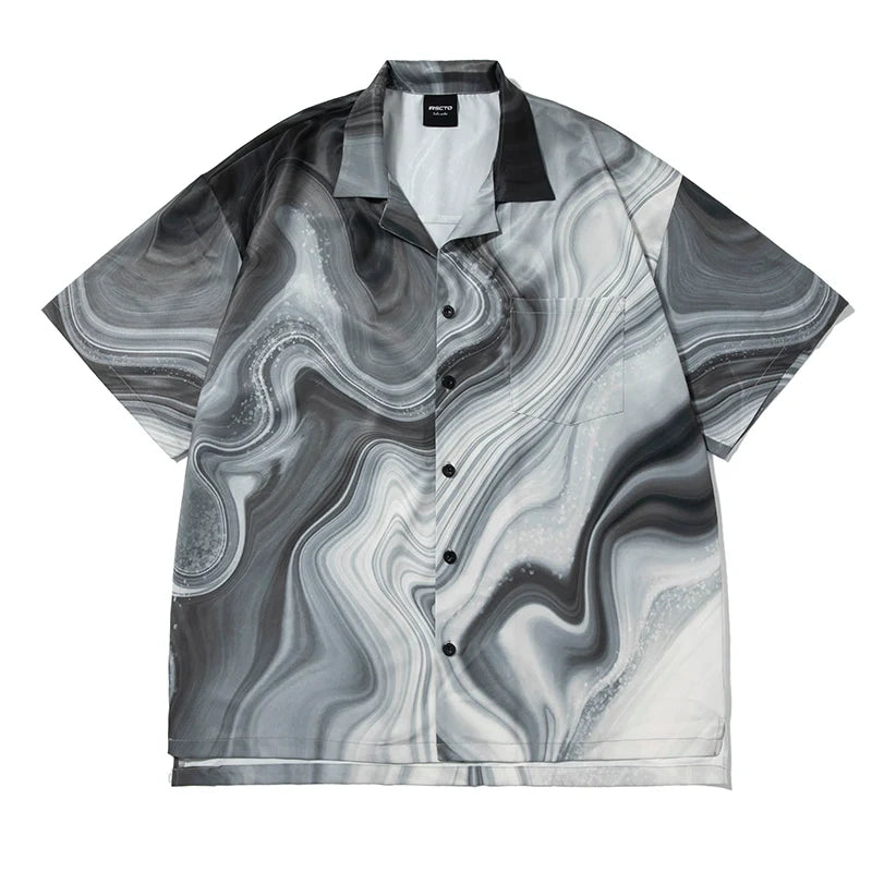 Elevate your style with the NOSAW polyester short sleeve shirt, featuring a unique marble pattern that adds a touch of sophistication to any outfit.