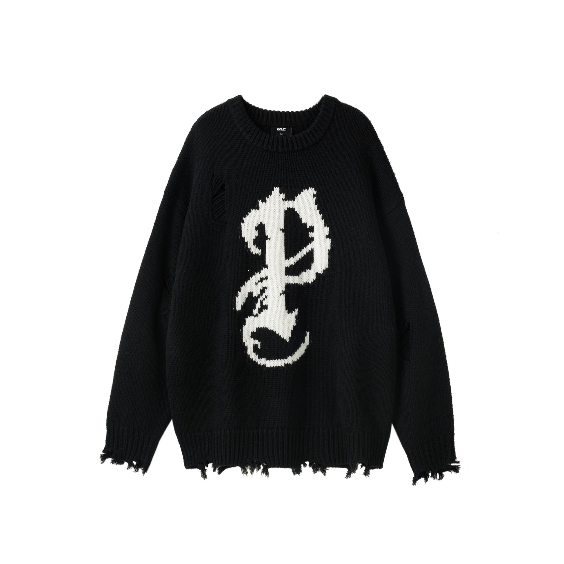 Elevate your wardrobe with our PCLP Cotton Sweater, featuring a stylish rib-knit collar, cuffs, and hems for added texture. The distressed details at the cuffs and hems give it a trendy, worn-in look, while the embedded design adds a unique touch to your outfit.