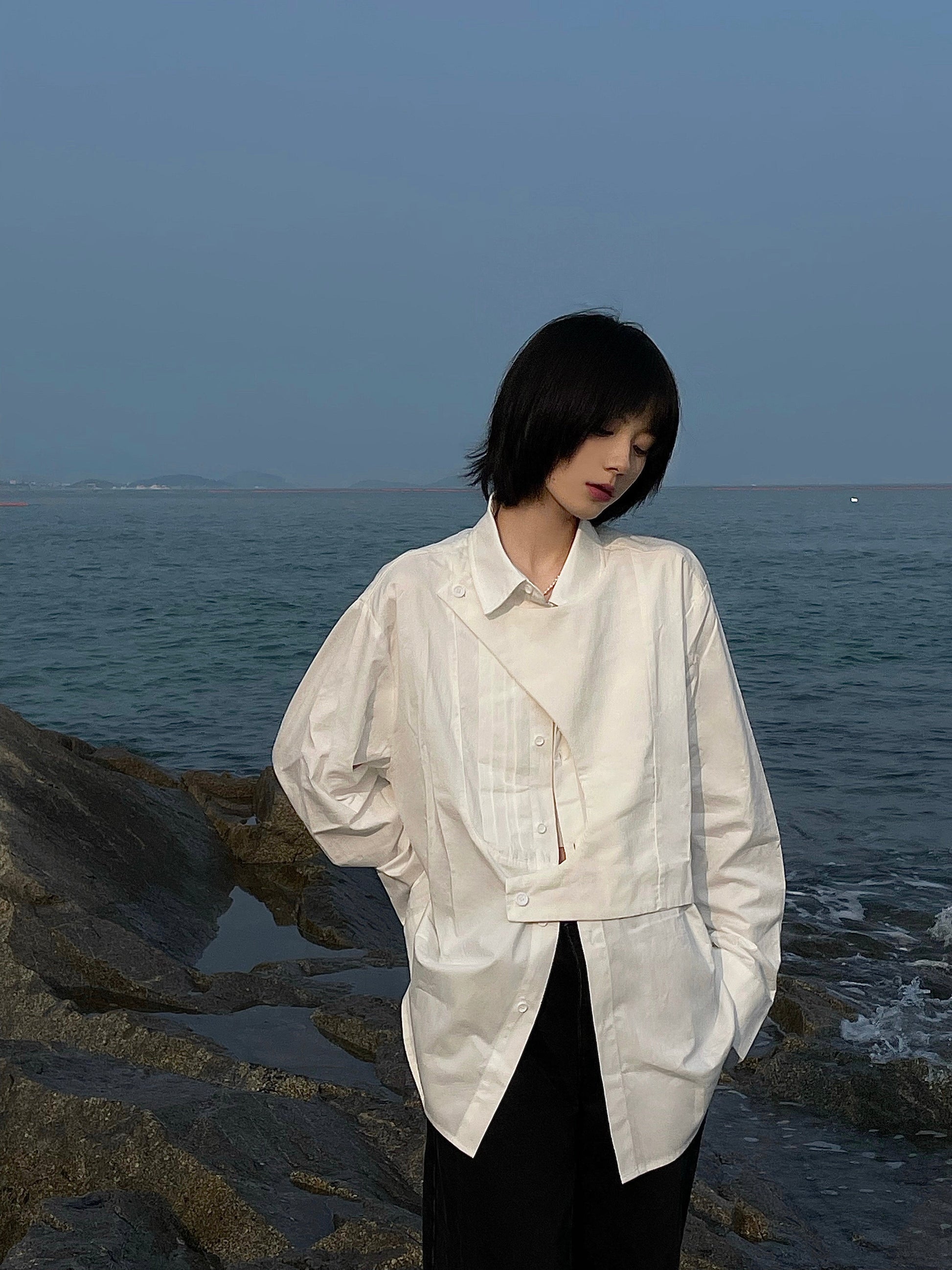 Elevate your wardrobe with our PCLP Cotton Long-Sleeve Shirt, designed for both style and comfort. Featuring a spread collar and a unique asymmetric construction, this shirt stands out in any setting.