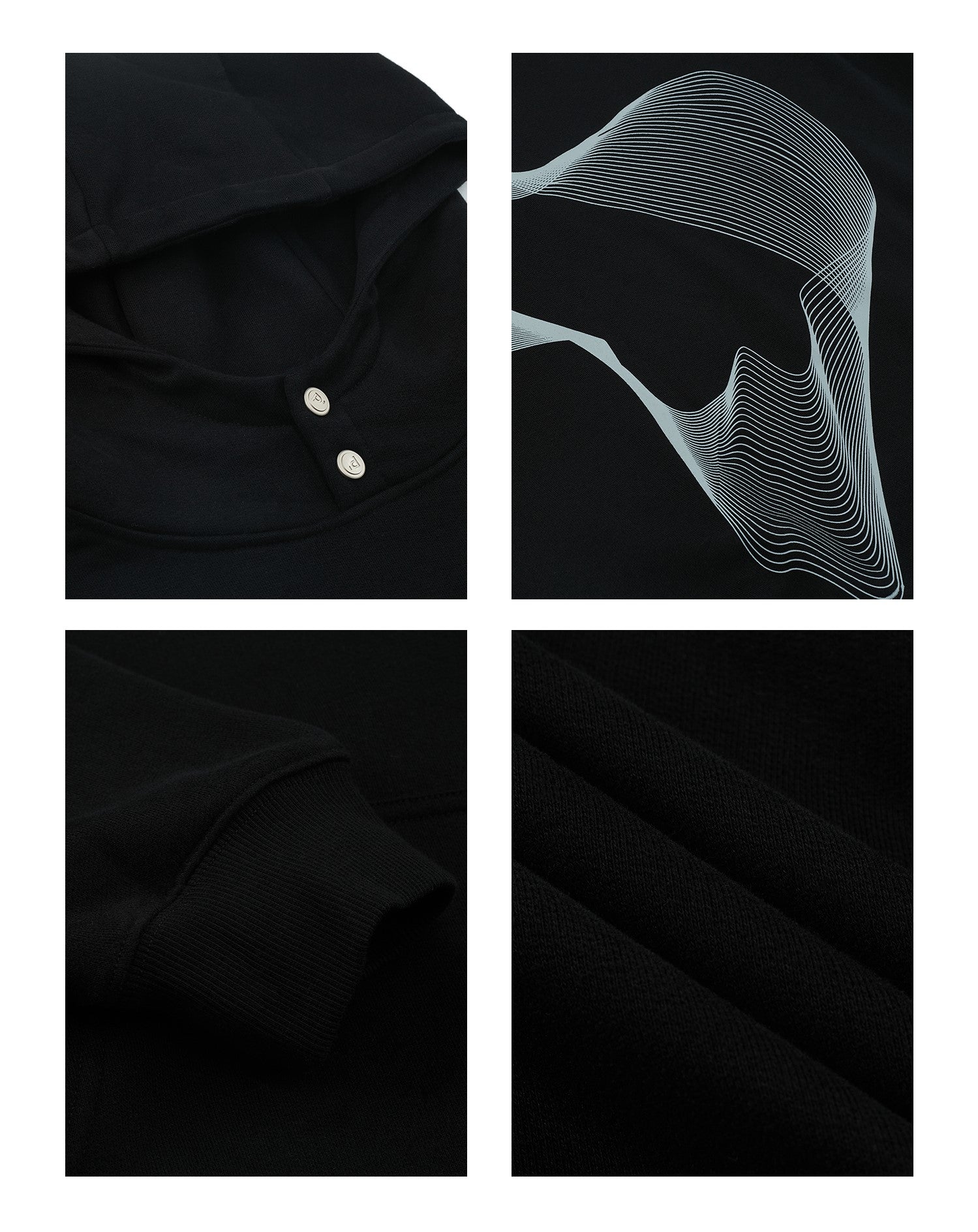 PCLP Wave Length Hoodie – Elevate your casual style with this comfortable and versatile hoodie. Crafted from premium 100% cotton, it features a unique double buttoned collar and practical kangaroo pockets for added convenience.