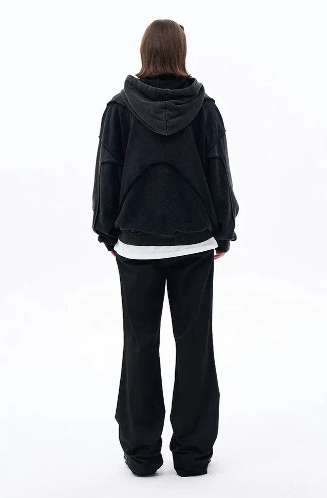 Elevate your style with our vintage washed, heavy cotton hoodie. This cut and sewn garment features a unique layered design, ensuring a trendy look.