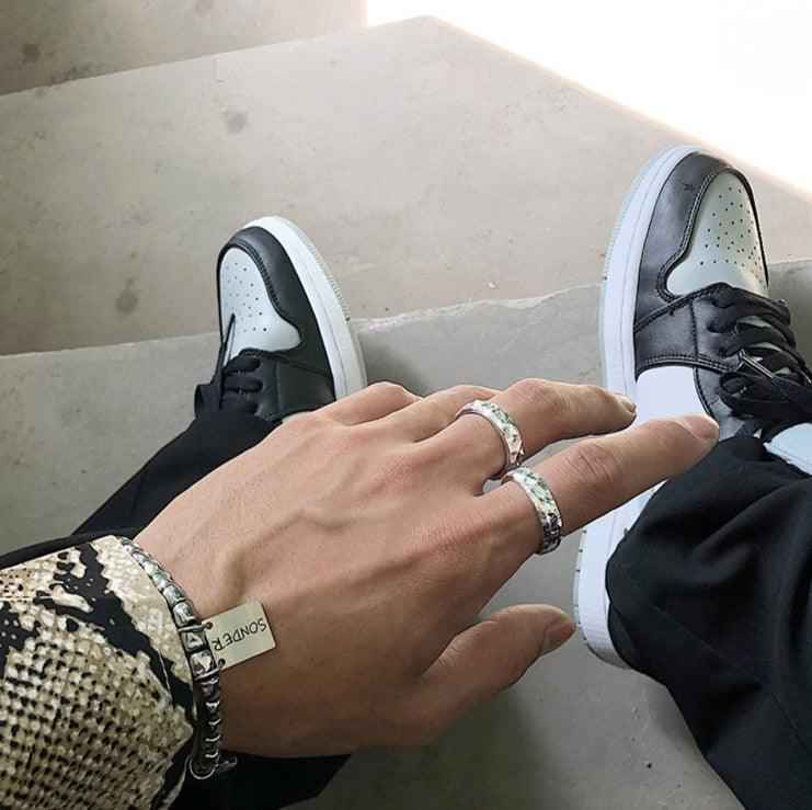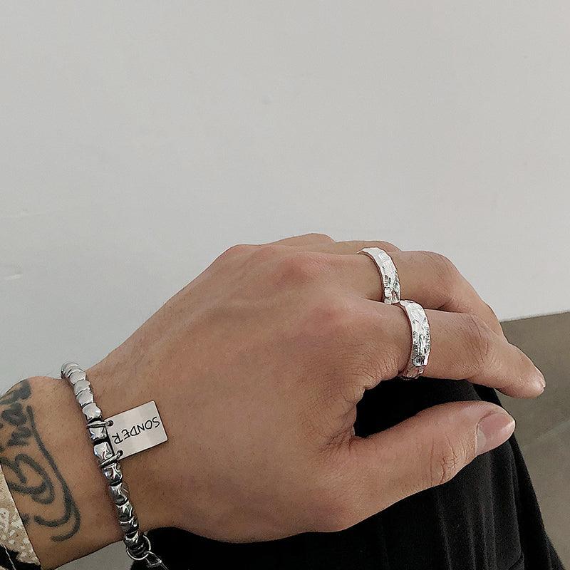 SAZ Regolith Ring: This stunning stainless steel ring features a crater-inspired design with intricate engraved detailing and the SAZ logo elegantly placed on the inner band.