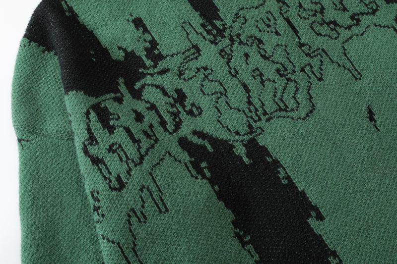 Featuring a unique knit graphic on the front, along with ribbed cuffs, hem, and collar, this sweater combines comfort and fashion effortlessly.