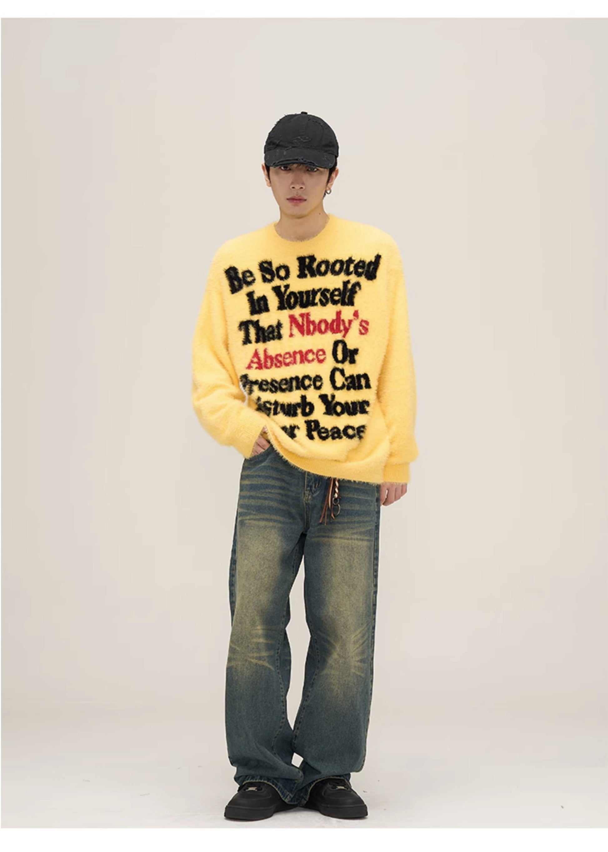 WLNEXT Knit Wool-Blend Sweater - Elevate your wardrobe with this stylish sweater featuring a ribbed crewneck, cuffs, and hem. The eye-catching text at the front adds a modern touch.